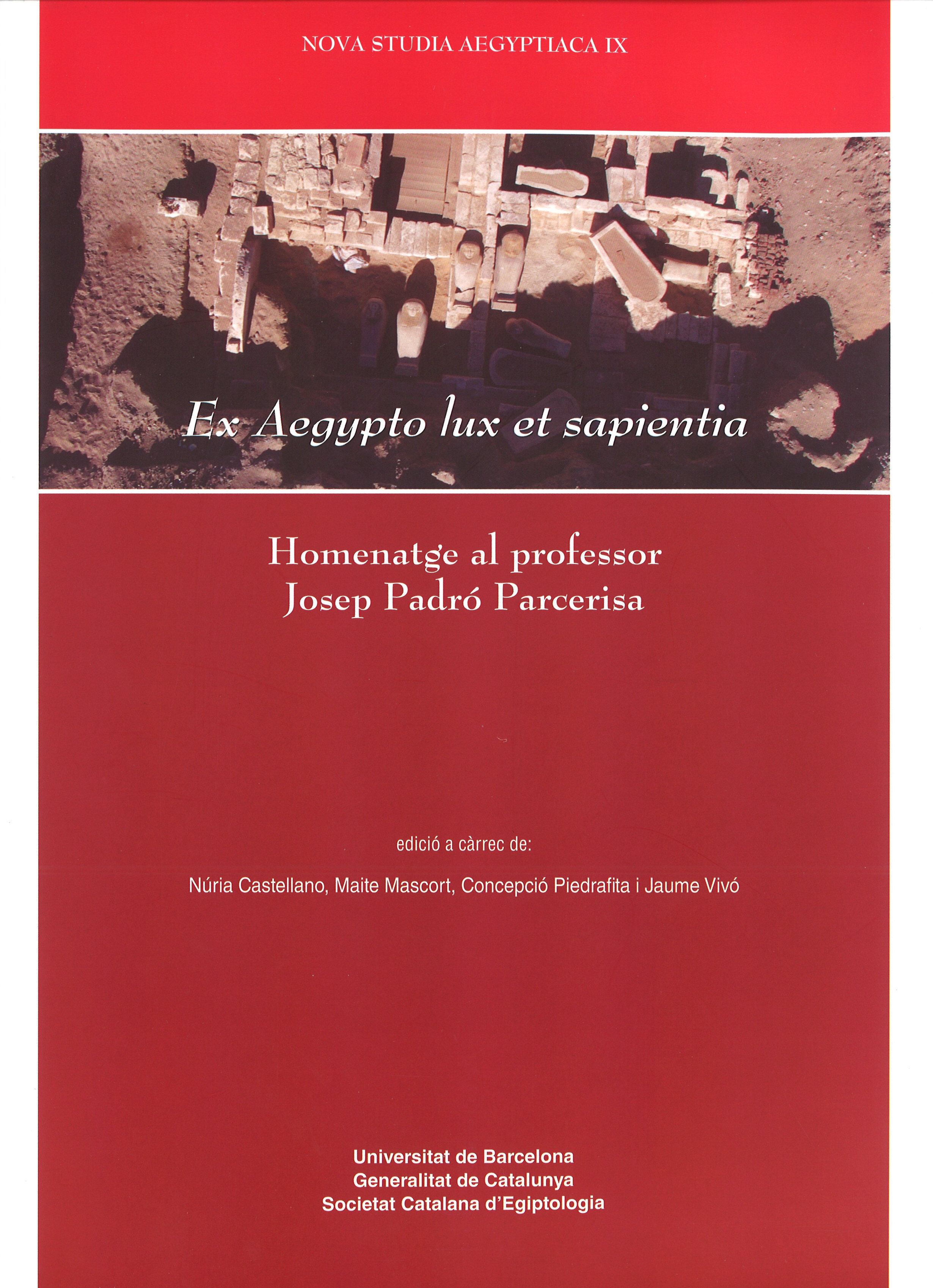 Volum d’homenatge al professor i egiptòleg Josep Padró Parcerisa. El Dr. Padró, introductor de l’Egiptologia a la universitat catalana i espanyola, és actualment el director de la missió arqueològica d’Oxirrinc.
