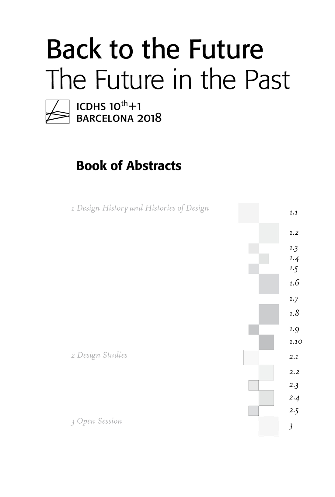 ICDHS is the acronym of the International Committee of Design History and Design Studies, an organisation that brings together scholars from Spain, Cuba, Turkey, Mexico, Finland, Japan, Belgium, the Netherlands, Brazil, Portugal, the US, Taiwan, Canada and the UK. Since 1999, when the Design and Art History departments of the University of Barcelona organised the first edition of the ICDHS, a conference has been held every two years at a different venue around the world. These conferences have had two distinct aims: first, to present original research in the fields of Design History and Design Studies and, second, to include contributions in these fields from non-hegemonic countries, offering a speaking platform to many scientific communities that are already active or are forming and developing. For that reason, the structure of the conferences combines many parallel strands, including poster presentations and keynote speakers who lecture on the conferences’ main themes. The 2018 event is rather special. The Taipei 2016 conference was the 10th edition and a commemoration of the ten celebrations to date. Returning to Barcelona in 2018 marks the end of one stage and the beginning of a new one for the Committee. The numbering chosen—“10+1”—also means that Barcelona 2018 is both an end and a beginning in the ICDHS’s own history. This book brings together 149 abstracts of papers delivered at the ICDHS 10th+1 Conference held in Barcelona on 29–31 October 2018. It also includes the abstracts of the four keynote lectures and a written tribute from the ICDHS Board to its founder and figurehead, Anna Calvera (1954–2018). The Conference, and the book, are dedicated to her memory.