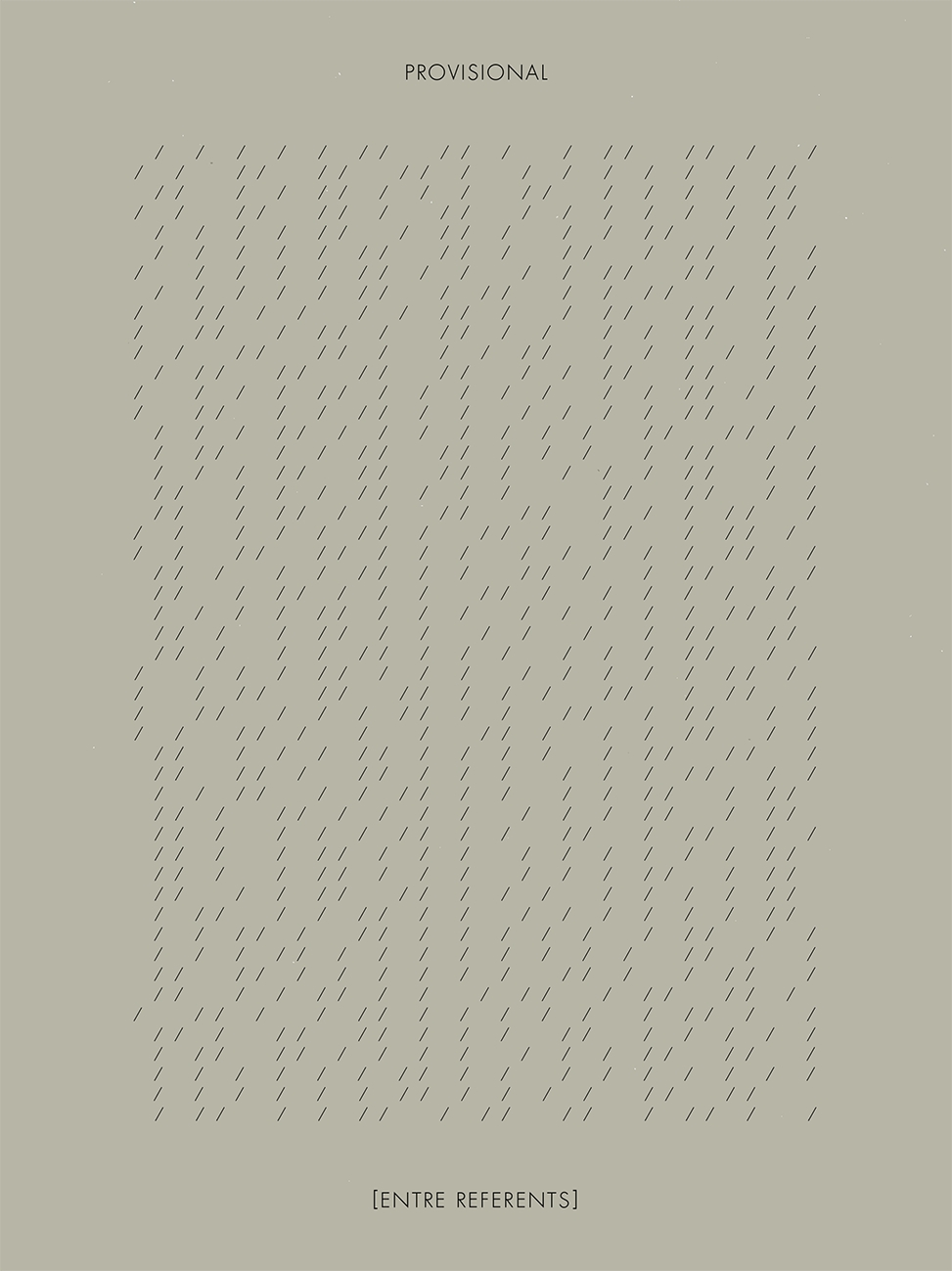 Provisional [entre referents] és una experiència artística en curs que versa sobre els referents que apuntalen els processos de la creació artística en l’actualitat. D’una banda, revela l’aspecte efímer de qualsevol construcció i/o desconstrucció