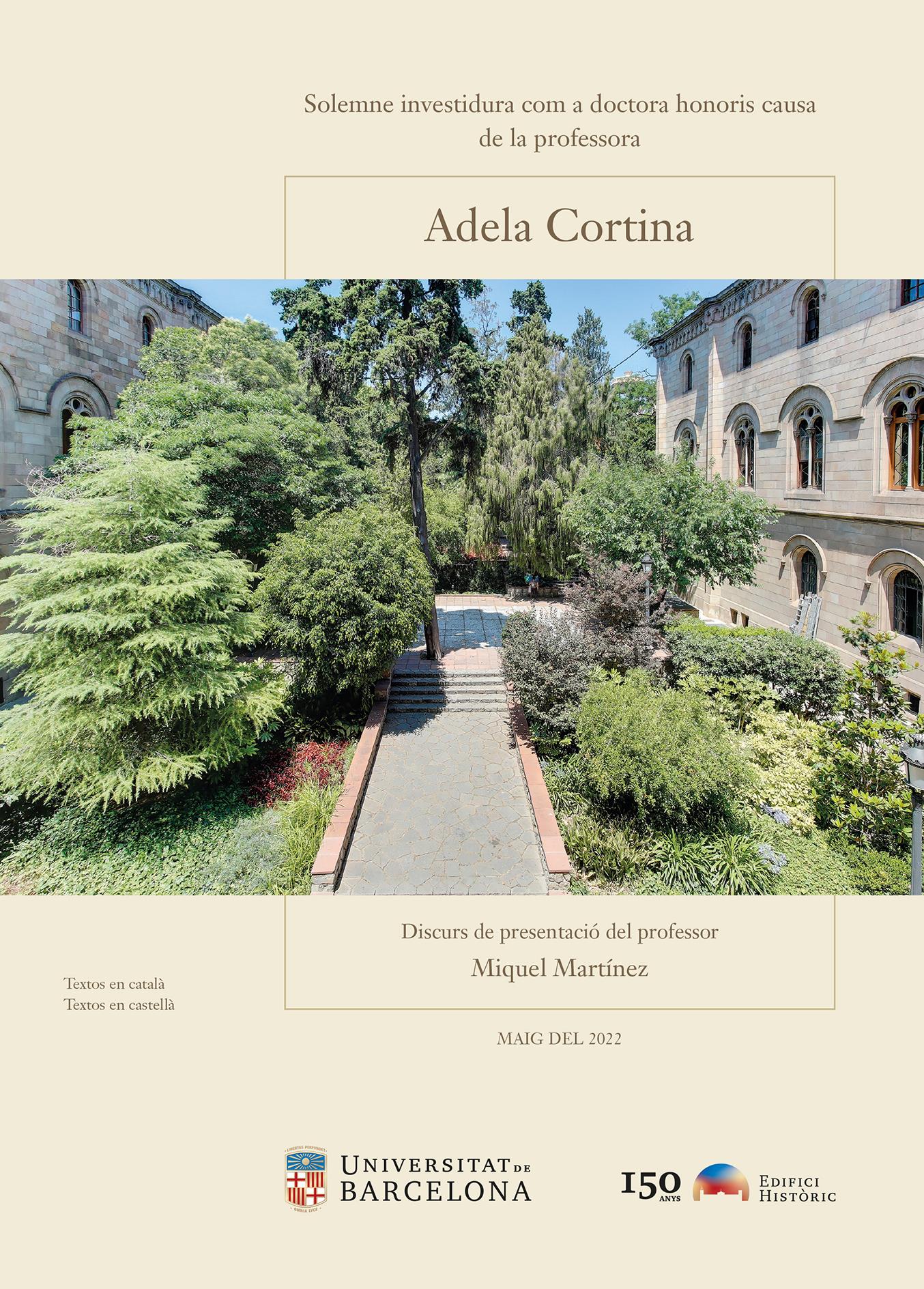 Discurs de l’acte solemne d’investidura acadèmica de conferiment del grau de doctora honoris causa a Adela Cortina, catedràtica d’Ètica i Filosofia Jurídica, Moral i Política de la Universitat de València. El professor Miquel Martínez introdueix la seva trajectòria acadèmica, que, entrellaçant els camps de la filosofia i la pedagogia, ha fet aportacions rellevants a l’àmbit de l’educació en valors.