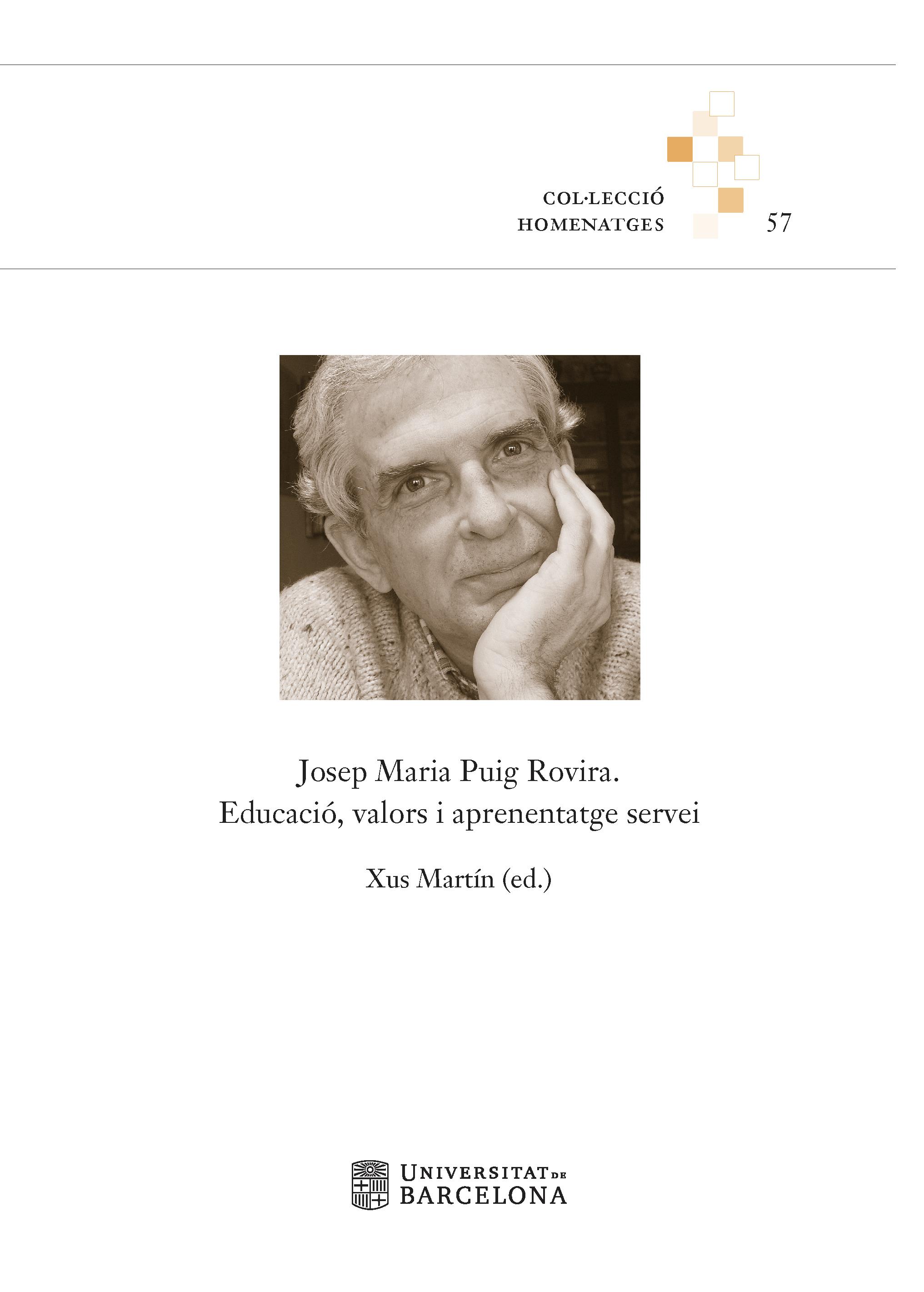 En aquest volum, amics, companys i col·legues reten homenatge al Dr. Josep Maria Puig Rovira, professor de la Facultat d’Educació de la Universitat de Barcelona. La cinquantena llarga d’articles que evoquen la vinculació del Dr. Puig Rovira amb el món educatiu i universitari són una mostra de la seva aportació a l’aprenentatge servei i de l’afecte que ha rebut en el decurs de la seva carrera.