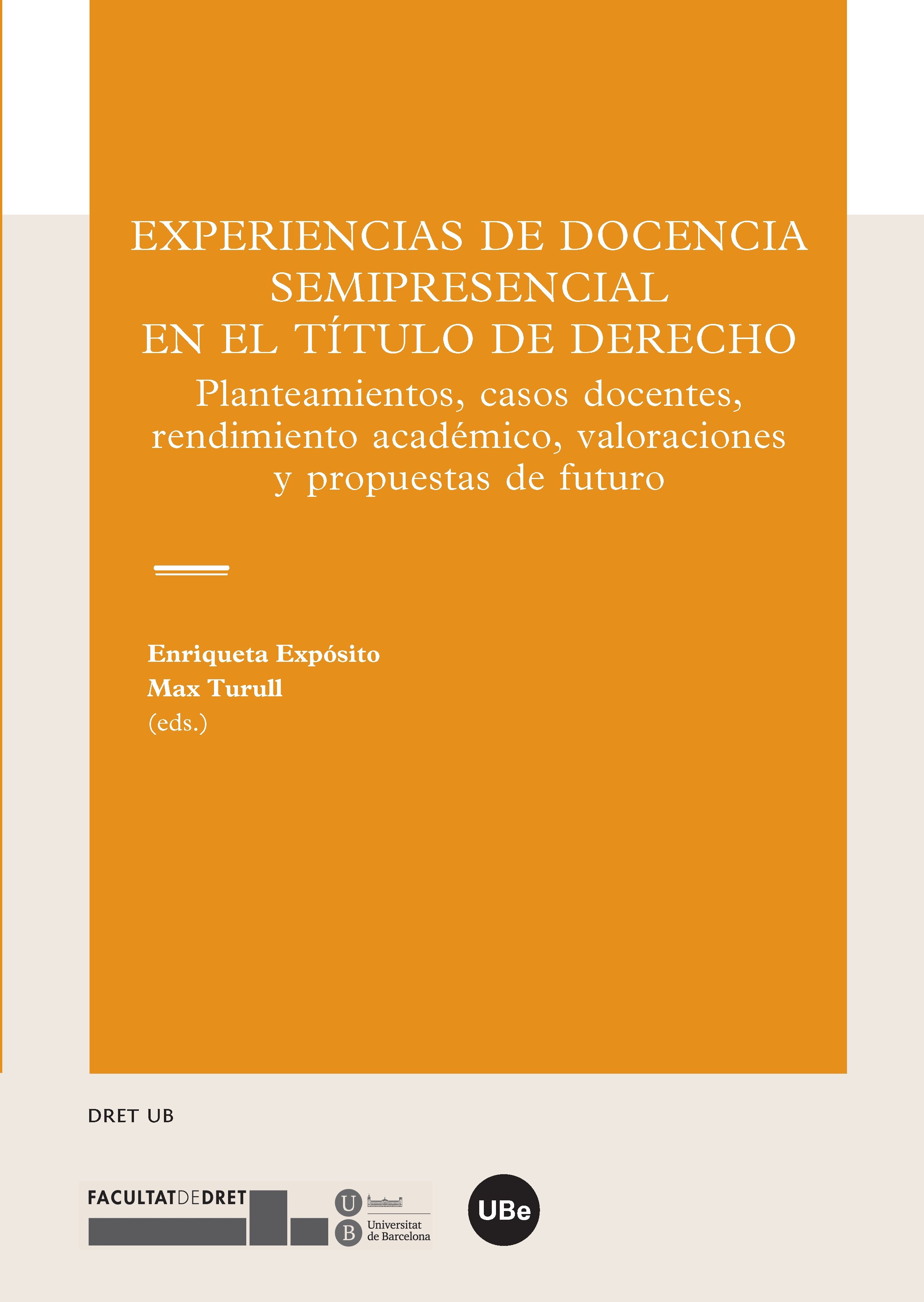 Este volumen describe y analiza la práctica de la docencia semipresencial en la Facultad de Derecho de la Universidad de Barcelona. La obra ofrece varios enfoques: por una parte, desde una óptica de la política académica, se expone por qué, cómo y cuándo se implantaron grupos de enseñanza semipresencial; por otra parte, desde la óptica del docente, se recogen catorce experiencias recientes que explican cómo se ha desarrollado la semipresencialidad en diez materias concretas; en tercer lugar, se presentan y analizan algunos datos estadísticos académicos especialmente significativos y nunca explotados hasta ahora acerca de este tipo de docencia y sus resultados en los títulos de Derecho de esta universidad; y en último lugar se valoran en su conjunto las experiencias realizadas en el contexto dado y se plantean algunas reflexiones para el futuro. Lejos de teorizar y conceptualizar la enseñanza semipresencial, el libro ofrece experiencias contrastadas que permitirán reflexionar sobre esta modalidad docente en los estudios de Derecho.