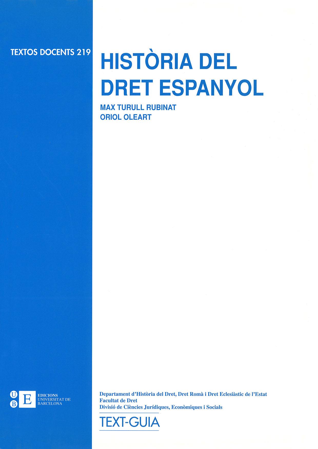 Aquest text-guia d’Història del Dret Espanyol vol servir l’estudiant de primer curs de Dret -però també els estudiants de la llicenciatura d’Història- per a introduir-se a la matèria. No és pas una eina que substitueixi ni els manuals ni la bibliografia, sinó que està pensat per a ser-ne una eina complementària que faciliti, precisament, de treure’n més profit i que enriqueixi l’estudi posant a disposició de l’estudiant més i més variats recursos. S’ha defugit voluntàriament de caure en un excés de teoria i en generalitzacions abusives, i s’ha pretès redactar un text eminentment pràctic, concret, precís i adequat, fins allò que ens consta, a les necessitats dels estudiants dels primers cursos universitaris. El text-guia que teniu a les mans es revisarà i actualitzarà periòdicament.
