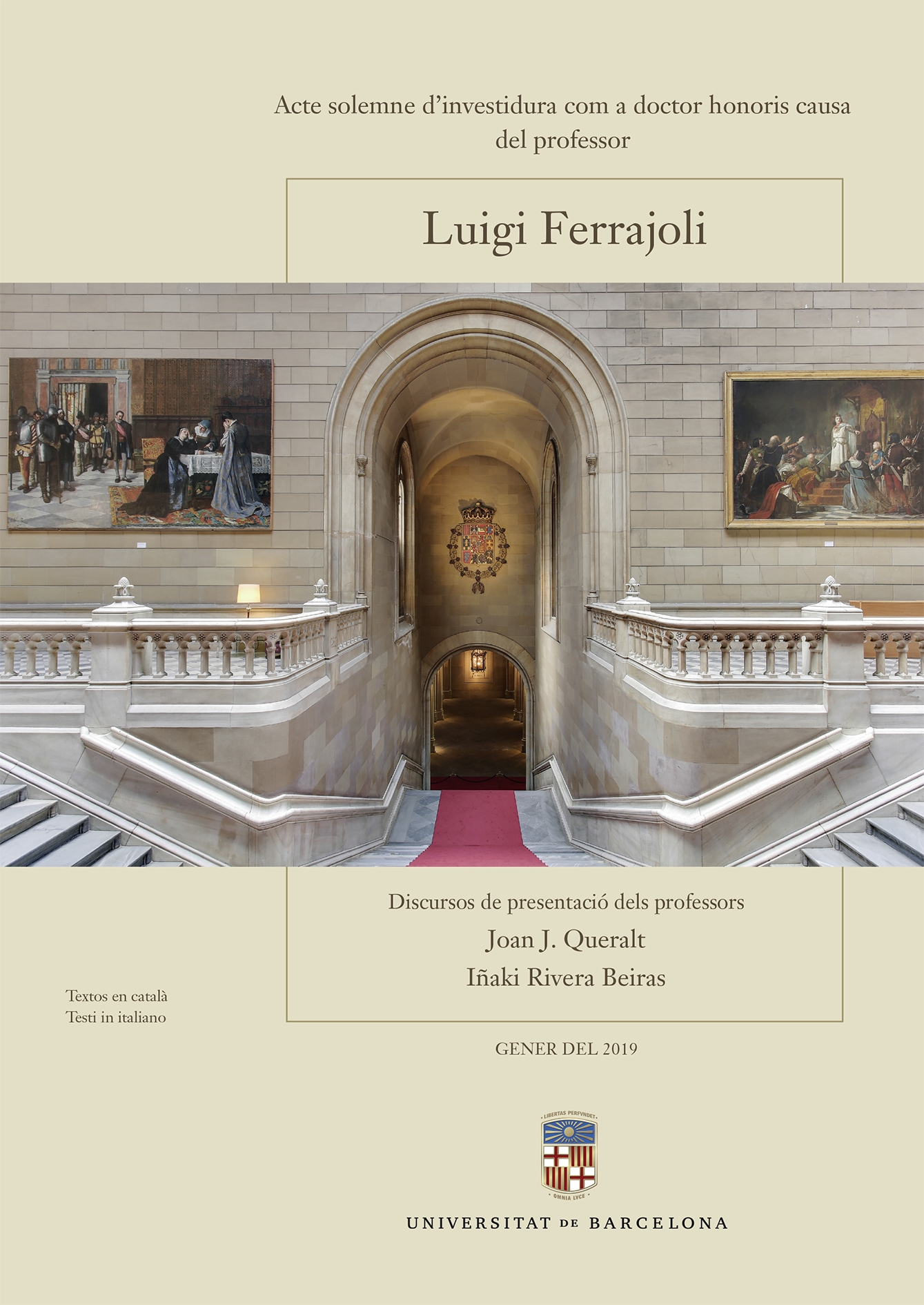 Discurs de l’acte solemne d’investidura acadèmica de conferiment del grau de doctor honoris causa a Luigi Ferrajoli. Els professors Joan J. Queralt i Iñaki Rivera Beiras hi introdueixen la trajectòria del jurista italià, una autoritat internacional en dret penal i en criminologia en particular.