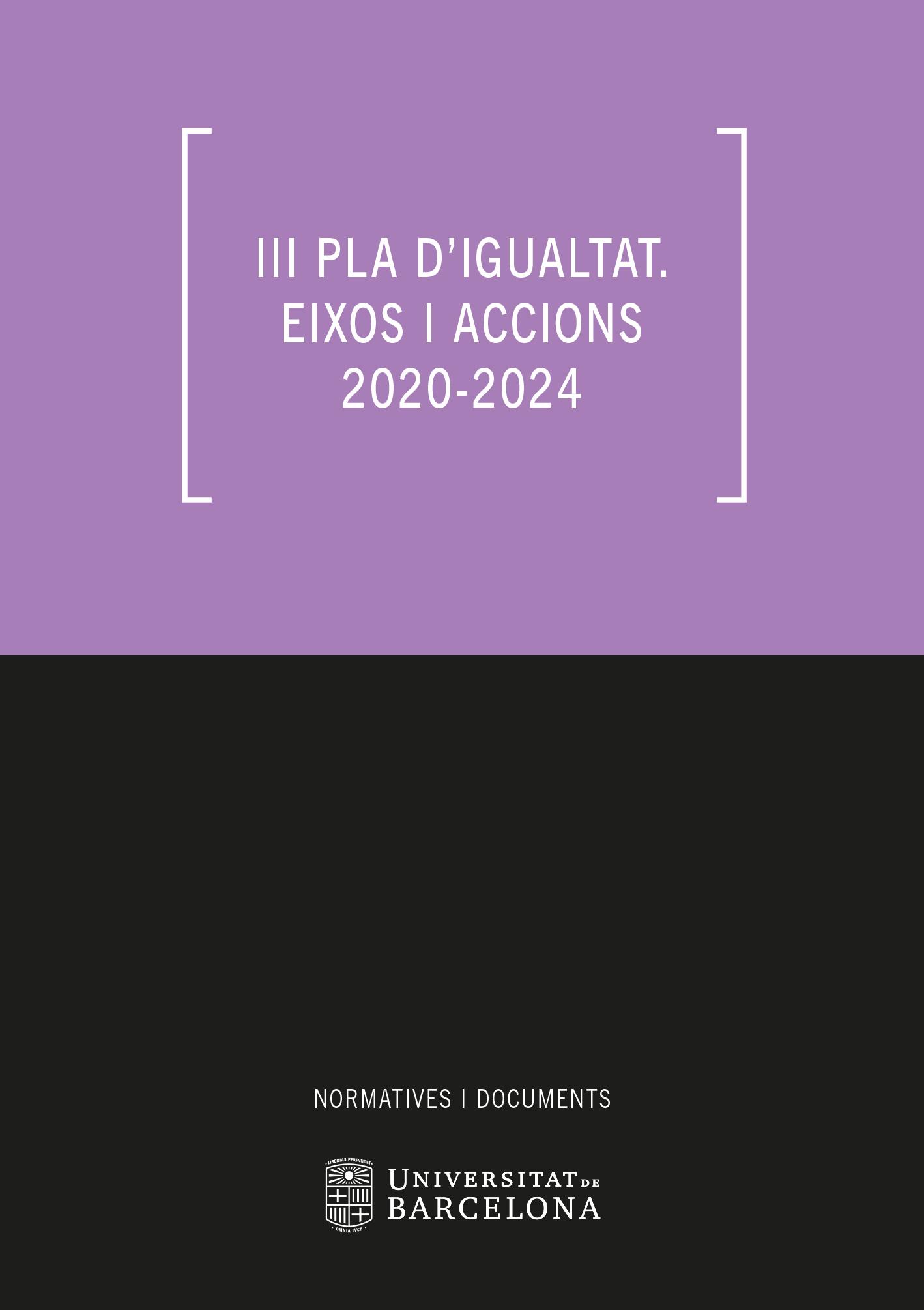 El present III Pla d’Igualtat neix com un procés natural de renovació i millora del II Pla d’Igualtat aprovat l’abril de 2011 i fruit del compromís i la voluntat de transversalitzar les polítiques de gènere i de la diversitat a la UB. Resultat de l’esforç de moltes persones, aquest projecte comú s’ha articulat a través de la Comissió d’Igualtat, les comissions de centre i la Unitat d’Igualtat. Està estructurat en set eixos: promoció de la igualtat; participació i representació equilibrada en la comunitat universitària i en l’organització i la gestió; igualtat en el treball i en la vida acadèmica; perspectiva de gènere en la docència; perspectiva de gènere en la recerca i la transferència, i en la innovació i l’emprenedoria; política de prevenció i erradicació de les violències masclistes i les actituds masclistes, i diversitats i interseccionalitat amb el gènere.
