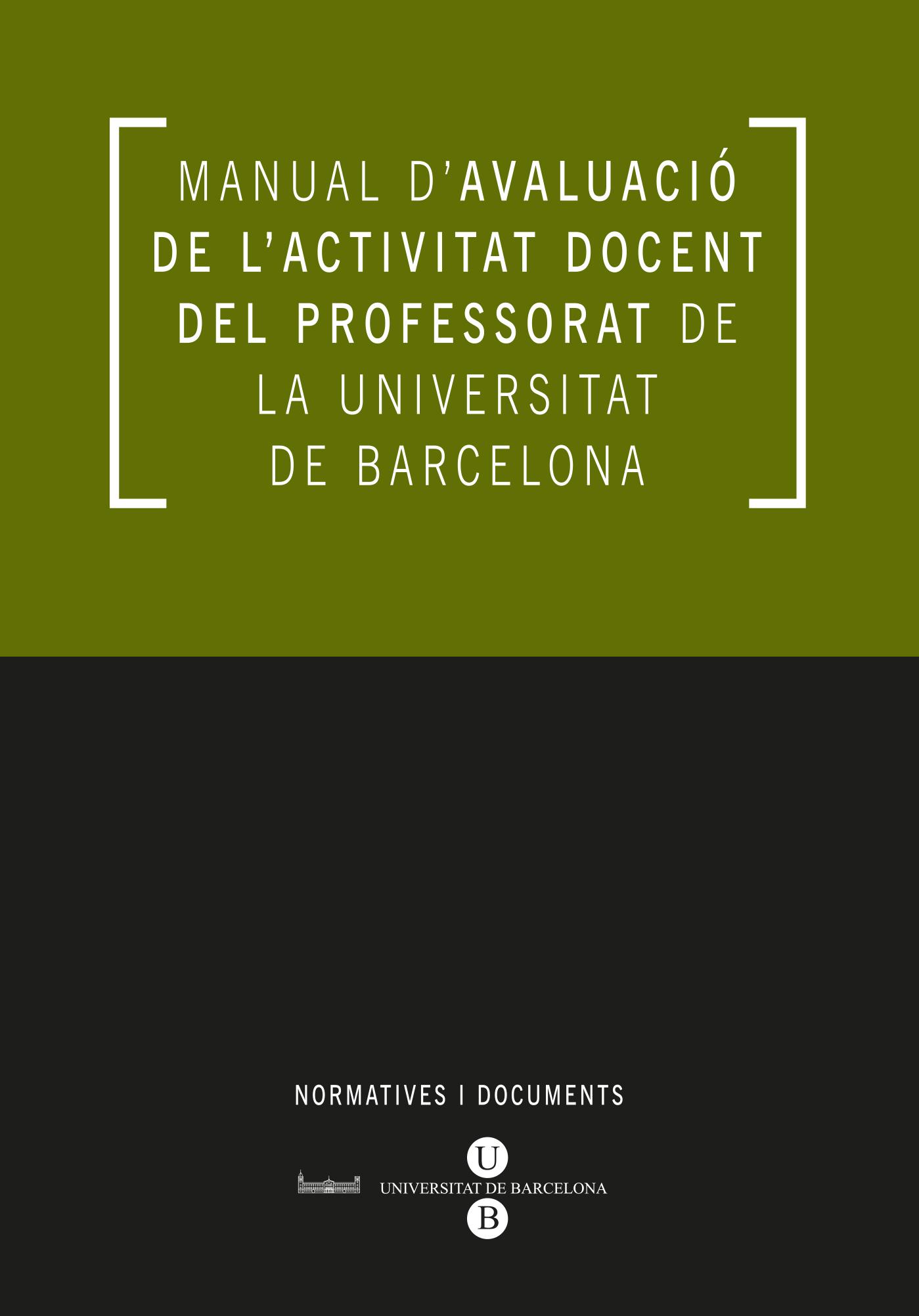 El Manual d’avaluació de l’activitat docent del professorat de la Universitat de Barcelona parteix de l’experiència de les convocatòries d’avaluació de l’activitat docent que han dut a terme la UB i, també, la resta d’universitats públiques catalanes, des de l’any 2003 fins al 2006. L’objectiu d’aquest document és concretar un model d’avaluació de l’activitat docent i de les seves conseqüències, ja que és una de les claus per conèixer el nivell de competència i per orientar la política de formació professional de la institució.