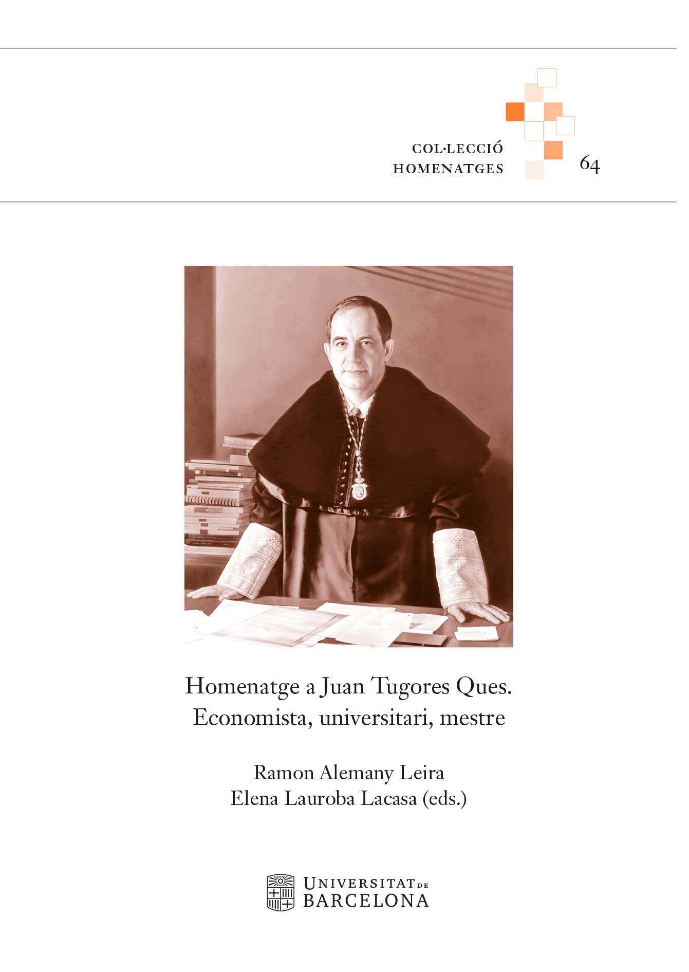 Escrit amb motiu de la jubilació de Juan Tugores Ques, aquest volum ha estat pensat en termes de liber amicorum: un llibre fet pels seus amics i col·legues per situar i fixar els records, els episodis o les imatges acadèmiques, intel·lectuals i de lideratge universitari al seu costat. Les contribucions dels diferents autors –membres de la comunitat universitària, però també representants diversos de la societat catalana– s’emmarquen sobretot en el context universitari, i fan referència al seu magisteri i a les responsabilitats variades que Tugores va tenir en la gestió universitària com a cap d’estudis, director del departament, degà de la Facultat d’Econòmiques, vicerector i rector de la Universitat de Barcelona.
