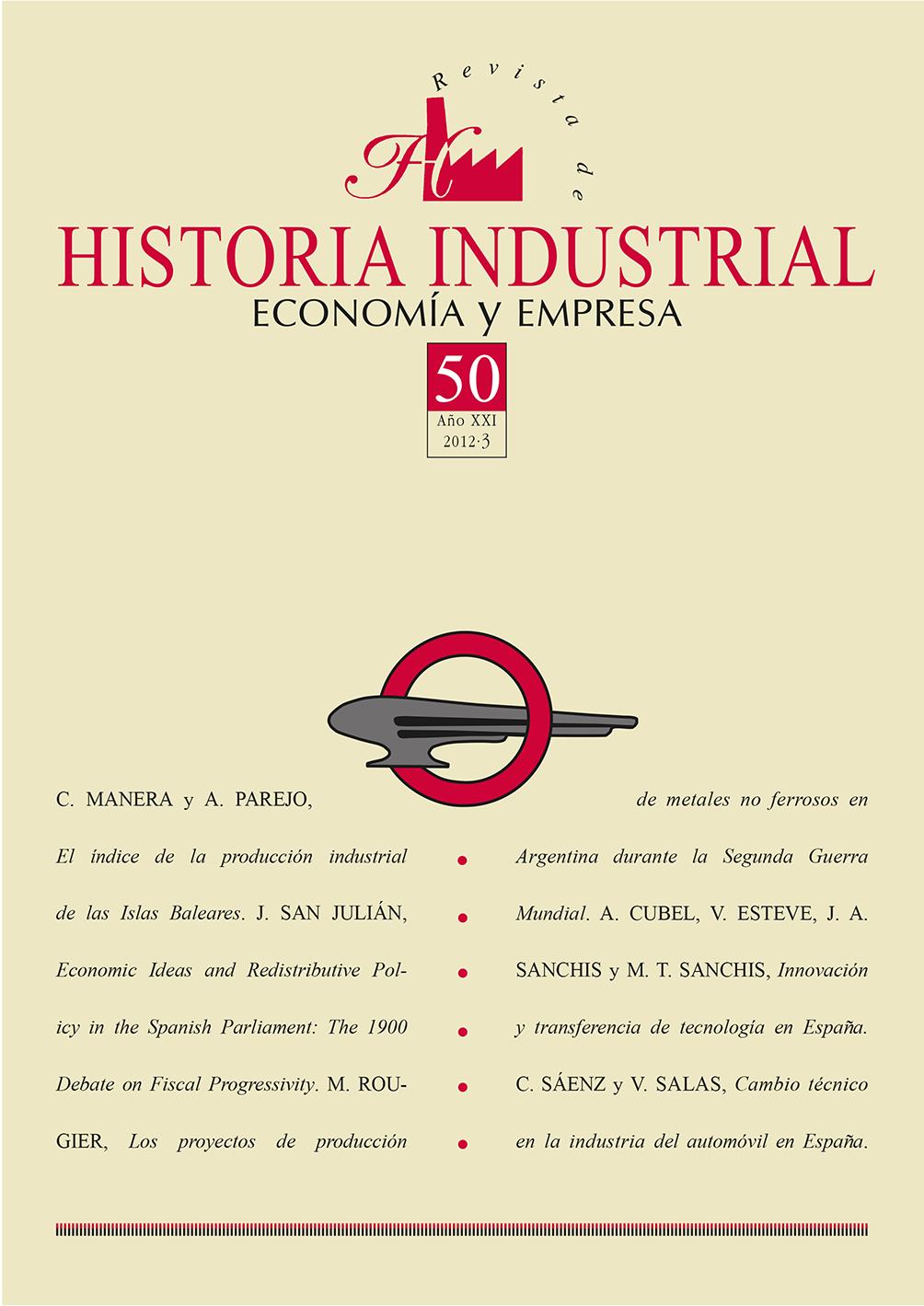 Los títulos de los artículos de este número son: El índice de la producción industrial de las Islas Baleares, 1850-2007; Economic Ideas and Redistributive Policy in the Spanish Parliament: The 1900 Debate on Fiscal Progressivity; Los proyectos de producción de metales no ferrosos en Argentina durante la Segunda Guerra Mundial; Innovación y transferencia de tecnología en España, 1950-2000, y Cambio técnico en la industria del automóvil en España, 1983-1992.