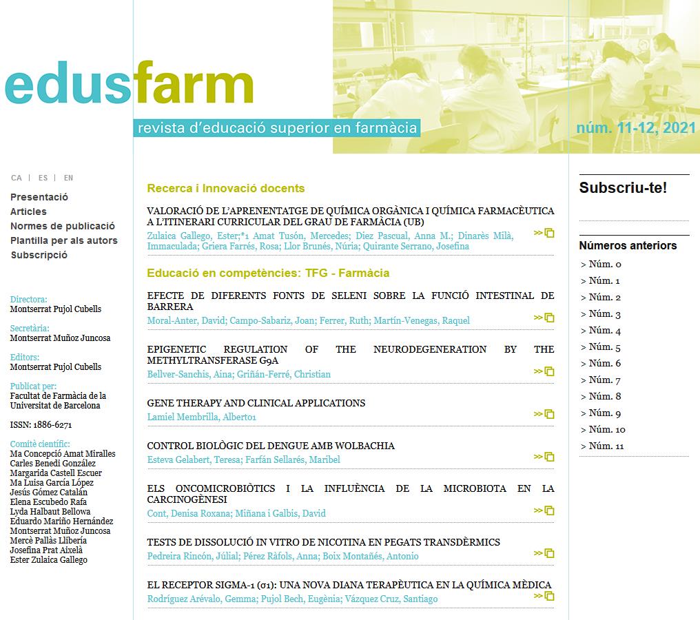 Edusfarm. Revista d’Educació Superior en Farmàcia, núm. 11-12