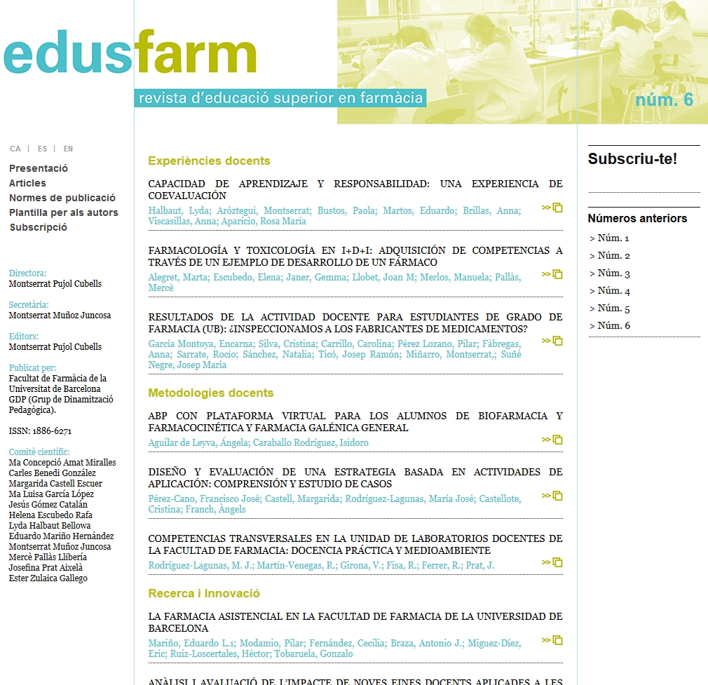 Edusfarm. Revista d’Educació Superior en Farmàcia, núm. 6