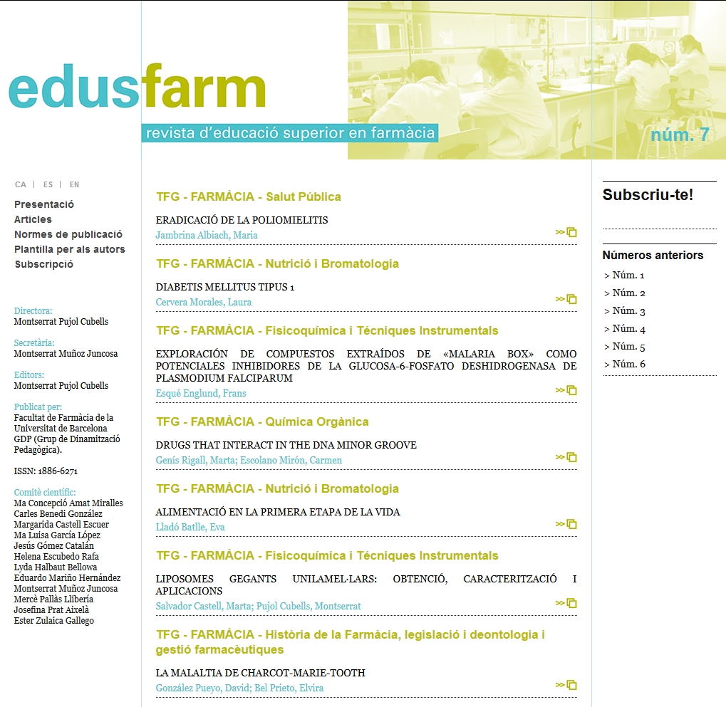 Edusfarm. Revista d’Educació Superior en Farmàcia, núm. 7