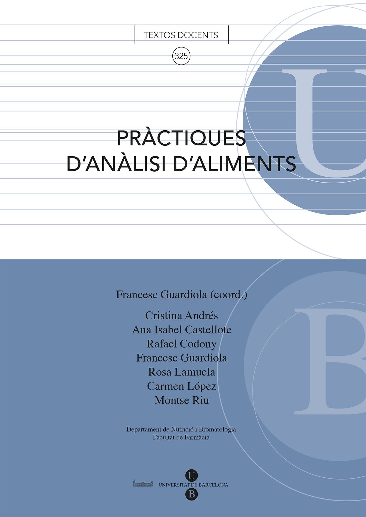 Aquest text està pensat com a eina de treball per a l’alumne de l’assignatura de Pràctiques d’Anàlisi d’Aliments (llicenciatura de Ciència i Tecnologia dels Aliments). El text recull tant informació pràctica, que serà útil a l’alumne per portar a terme les diferents determinacions analítiques programades, com informació teòrica, que li permetrà assolir els principals fonaments teòrics d’aquestes determinacions i també resoldre les qüestions que es plantegin en relació amb cadascuna d’aquestes. La resolució d’aquestes qüestions per part de l’alumne suposarà una tasca personal d’autoaprenentatge que complementarà l’activitat presencial i contribuirà que s’assoleixin els objectius plantejats al principi de cadascuna de les determinacions analítiques i els plantejats en el pla docent de l’assignatura.