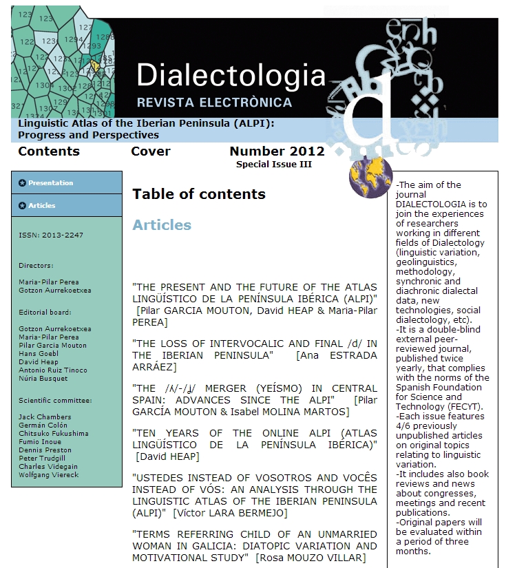Dialectologia, special issue III: Linguistic Atlas of the Iberian Peninsula (ALPI): Progress and Perspectives