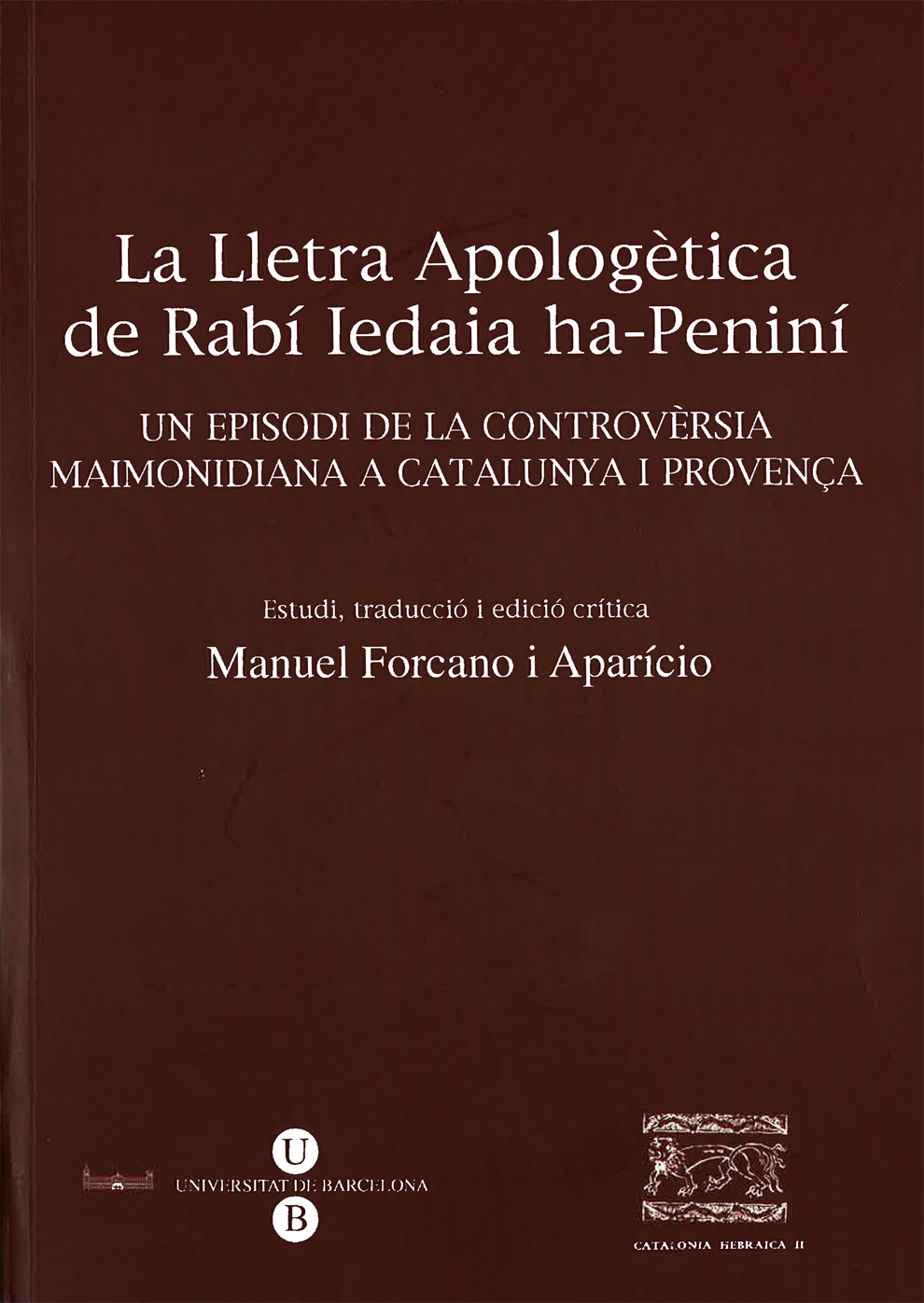 Lletra apologètica del Rabí Iedaia ha-Peniní, La. Un episodi de la controvèrsia maimonidiana a Catalunya i Provença