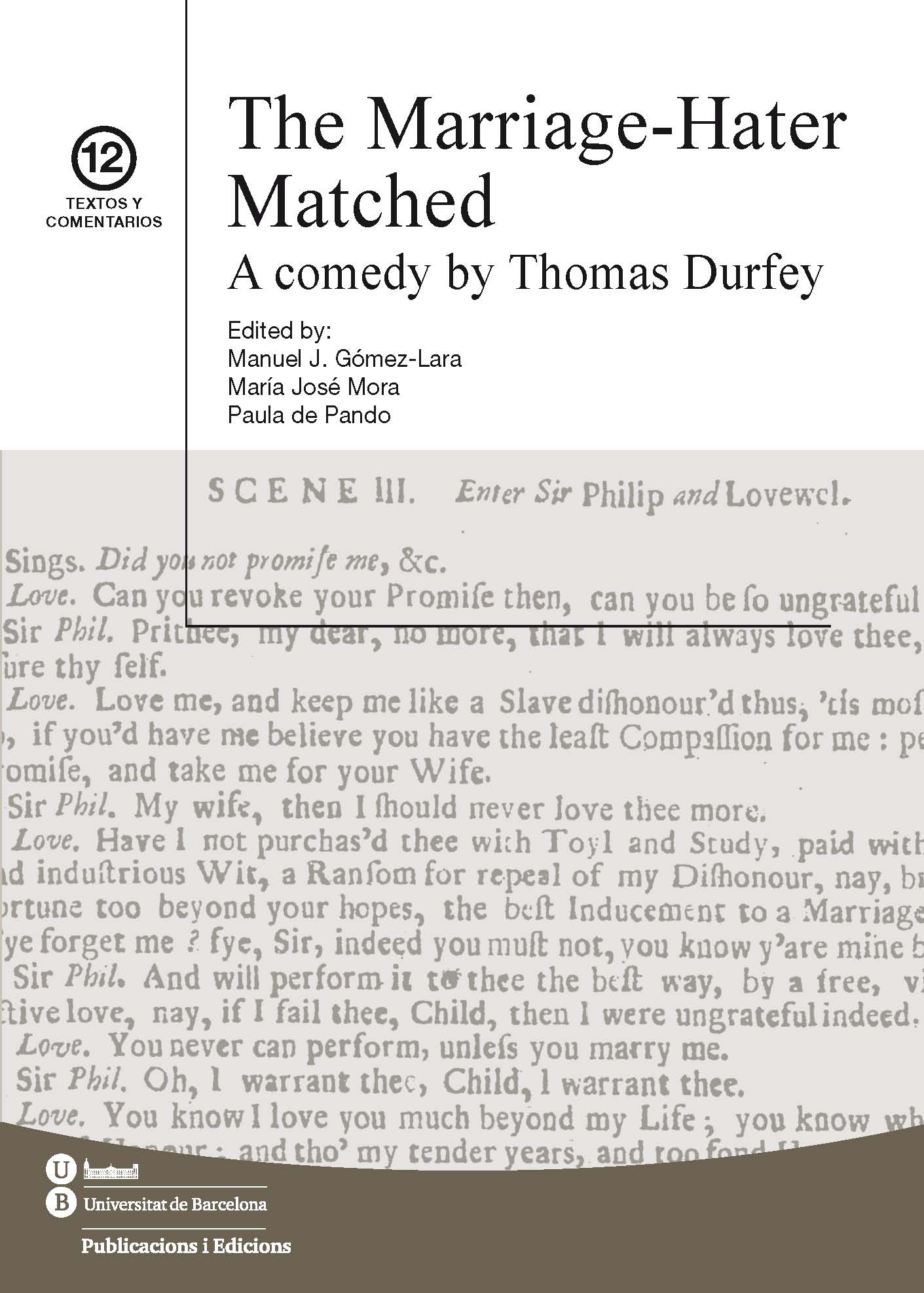 When young Phoebe asks Sir Philip Freewit, the man who has got her with child, to fulfil his promise and marry her, he replies with shock: “My wife! Then I should never love thee more”. Thomas Durfey’s The Marriage-Hater Matched (1692) pokes fun at the figure of the libertine rake, which had become a favourite dramatic type with Restoration theatregoers, and forces him in the end to make up for his past recklessness. Besides the marriage-hater and the two women that vie for his affections, a remarkable gallery of secondary characters people this amusing comedy: a Frenchified lady fawning on her lap-dog, a fat clownish Dutchman laughing at his own jokes, a impertinent match-making widow obsessed with food, a peevish old-fashioned courtier, a pert lisping ingénue and two rude boobies bearing the names of Greek philosophers. This first modern critical edition offers a fully annotated text in addition to an introduction that situates the comedy in its literary and theatrical contexts. The editors discuss at length how Durfey drew upon successful comic modes while at the same complying with the moral values advocated by the new monarchs, William and Mary (1688-1702).