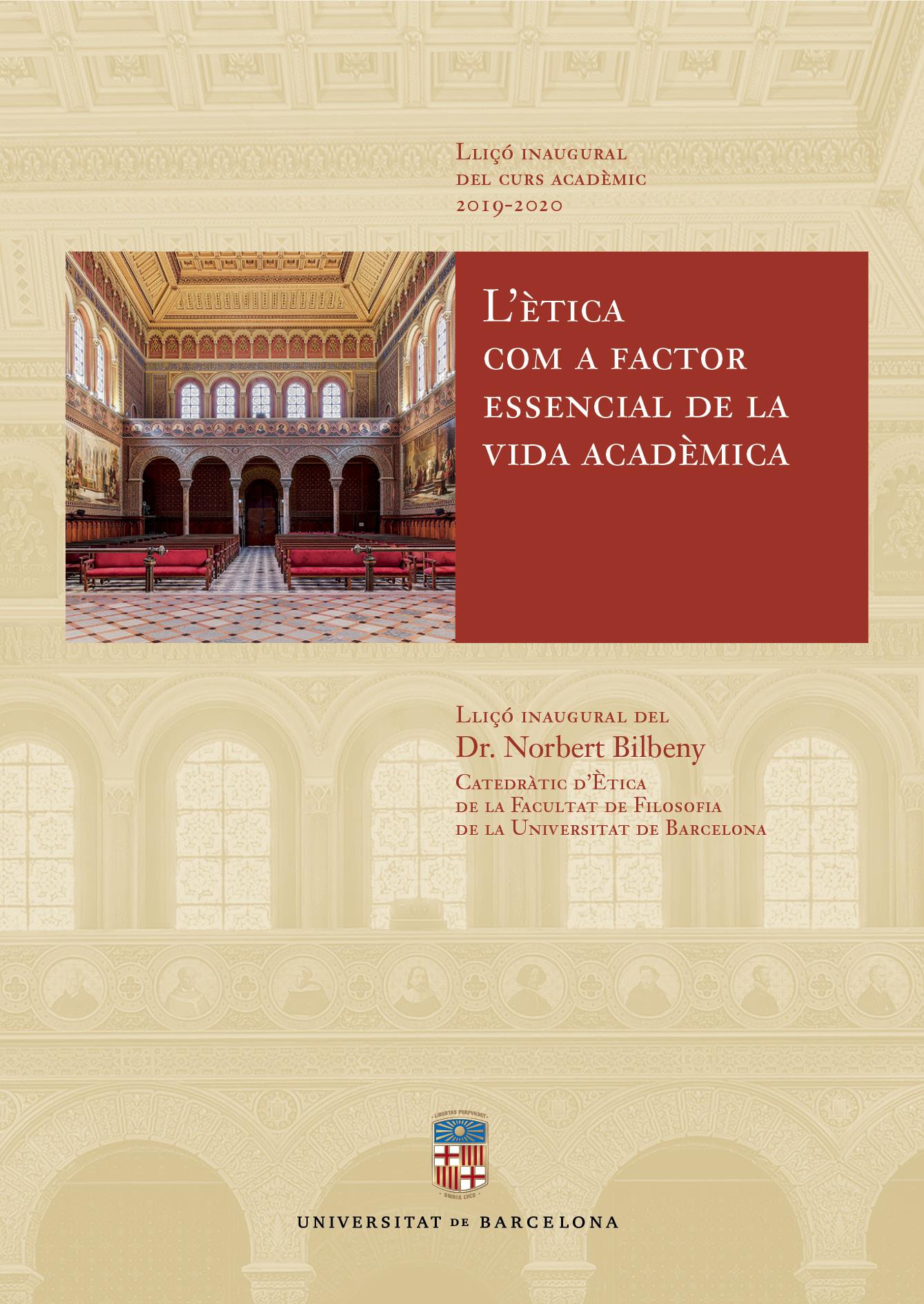 La lliçó inaugural del curs 2019-2020 és obra del Dr. Norbert Bilbeny, catedràtic de la Facultat de Filosofia de la Universitat de Barcelona. En el seu discurs no sols ofereix una evolució històrica del concepte de l’ètica, sinó que aborda els elements amb què la comunitat universitària ha de poder garantir les bones pràctiques i el prestigi de la pròpia institució.