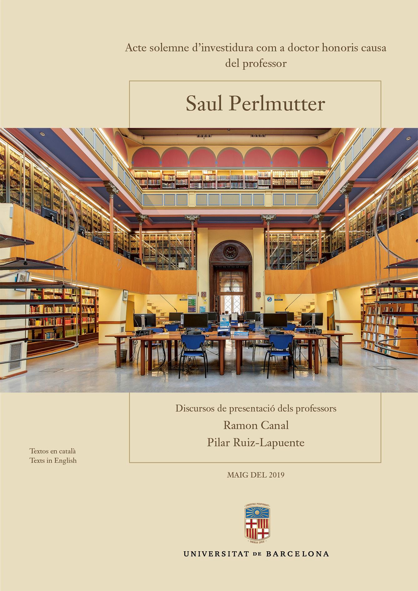 Discurs de l’acte solemne d’investidura acadèmica de conferiment del grau de doctor honoris causa a Saul Perlmutter. Els professors Ramon Canal i Pilar Ruiz-Lapuente hi introdueixen la trajectòria de l’astrofísic nord-americà, que va liderar el descobriment de l’expansió accelerada de l’Univers als anys noranta i va ser guardonat amb el Nobel de Física el 2011.