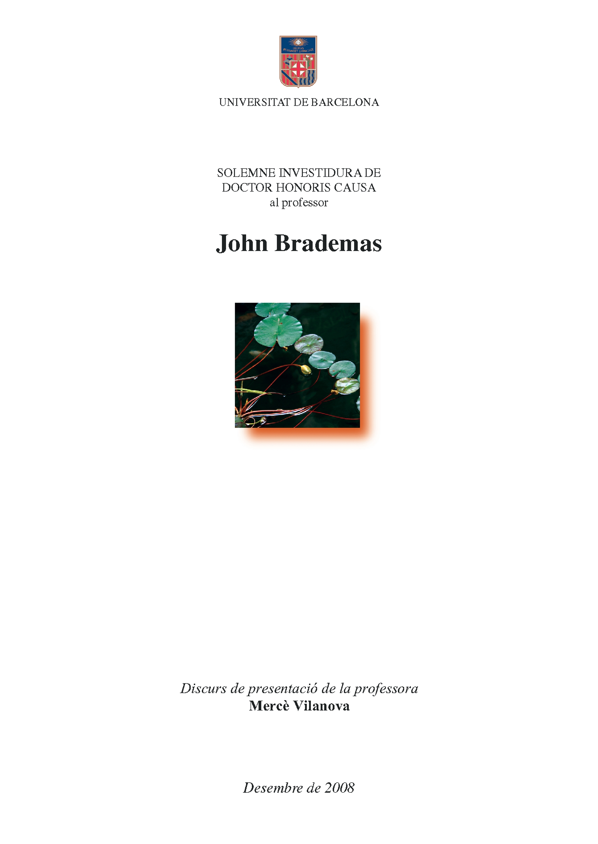 Solemne investidura acadèmica de conferiment del grau de Doctor Honoris Causa al professor John Brademas