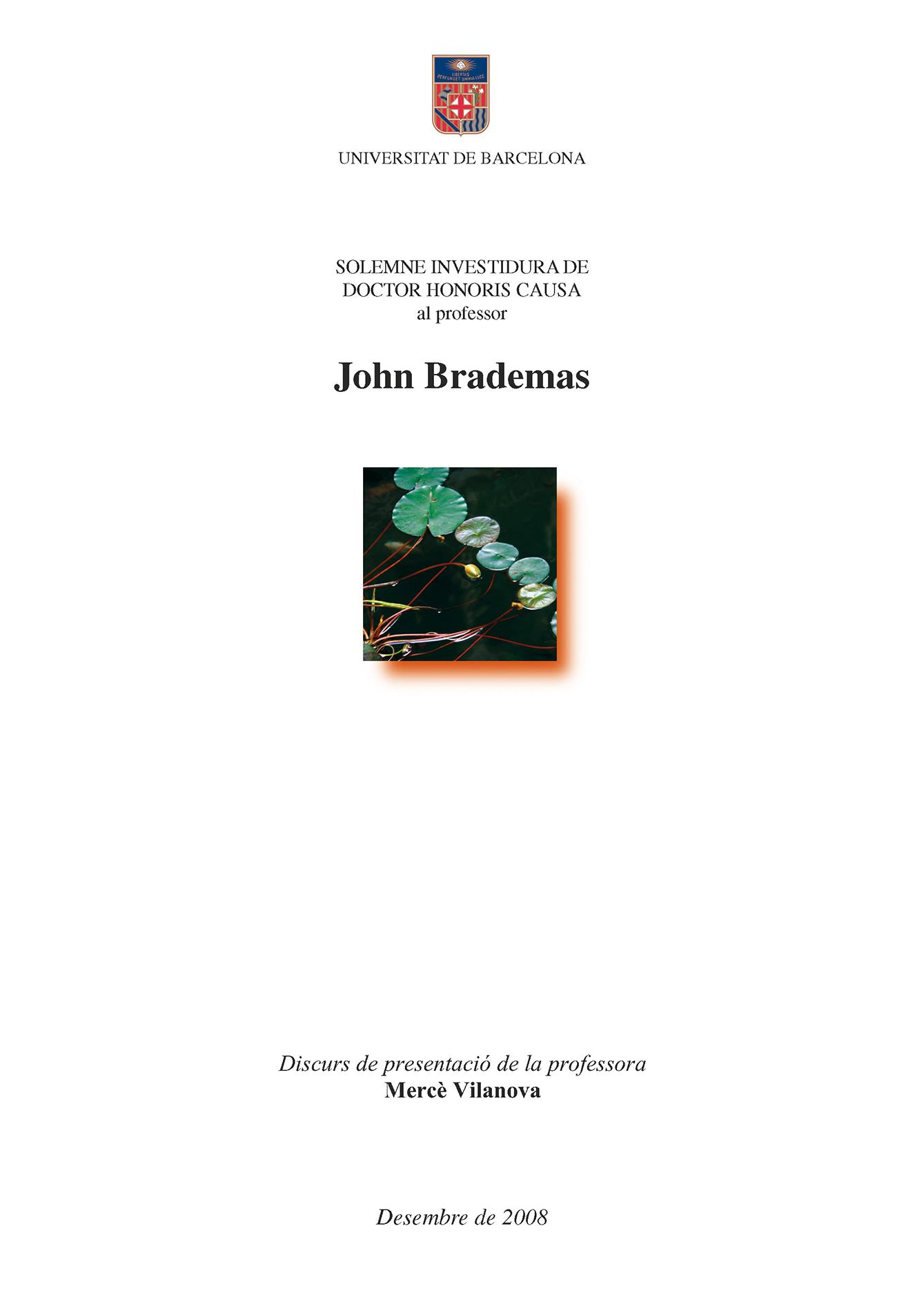 Solemne investidura acadèmica de conferiment del grau de doctor honoris causa al professor John Brademas.