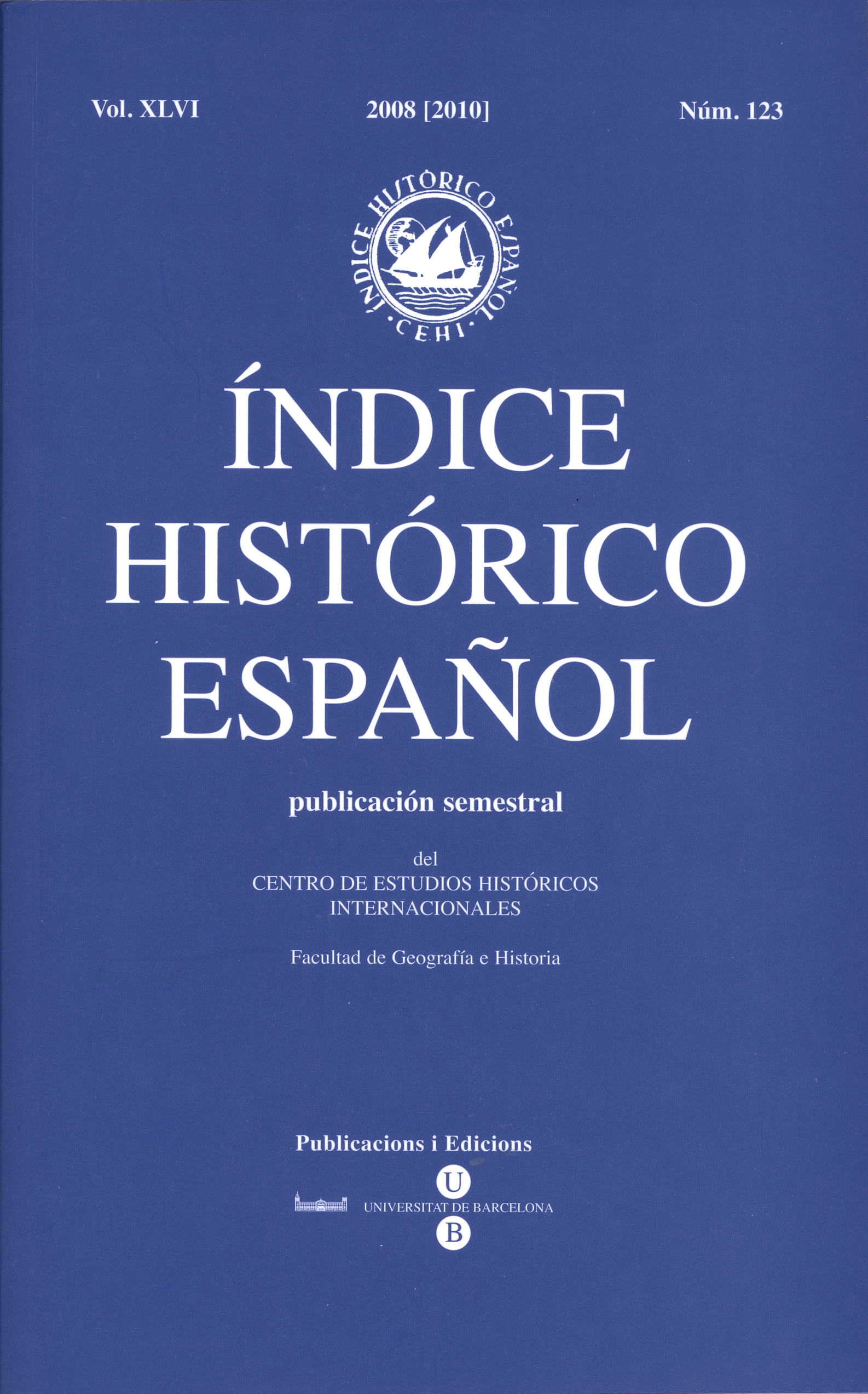 Índice Histórico Español volumen XLVI núm. 123, año 2008 [2010]
