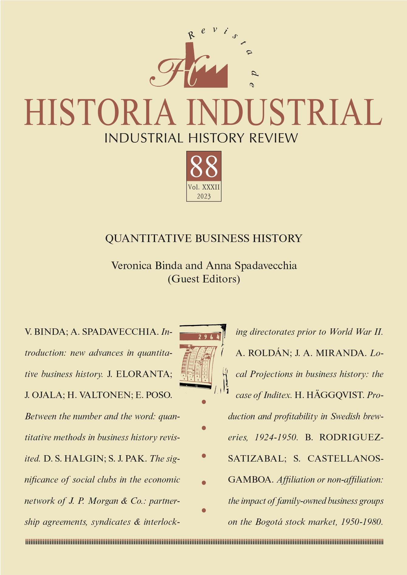 Founded in 1992, Revista de Historia Industrial – Industrial History Review (RHI-IHR) is a pioneering journal indexed in the most prestigious international databases. It promotes historical research into the processes of industrialization and the social, economic, institutional, environmental and demographic transformations associated with them. With a global scope and an inclination toward methodological diversity, RHI-IHR publishes original papers in English and Spanish in three regular issues each year. The current issue is devoted to Quantitative Business History. It explores the diffusion and impact of quantitative methods in this discipline, and applies them in papers on firms and sectors, including the New York firm of J. P. Morgan & Co., the Spanish company Inditex, the brewery industry in Sweden, and Bogota’s stock market in Colombia.