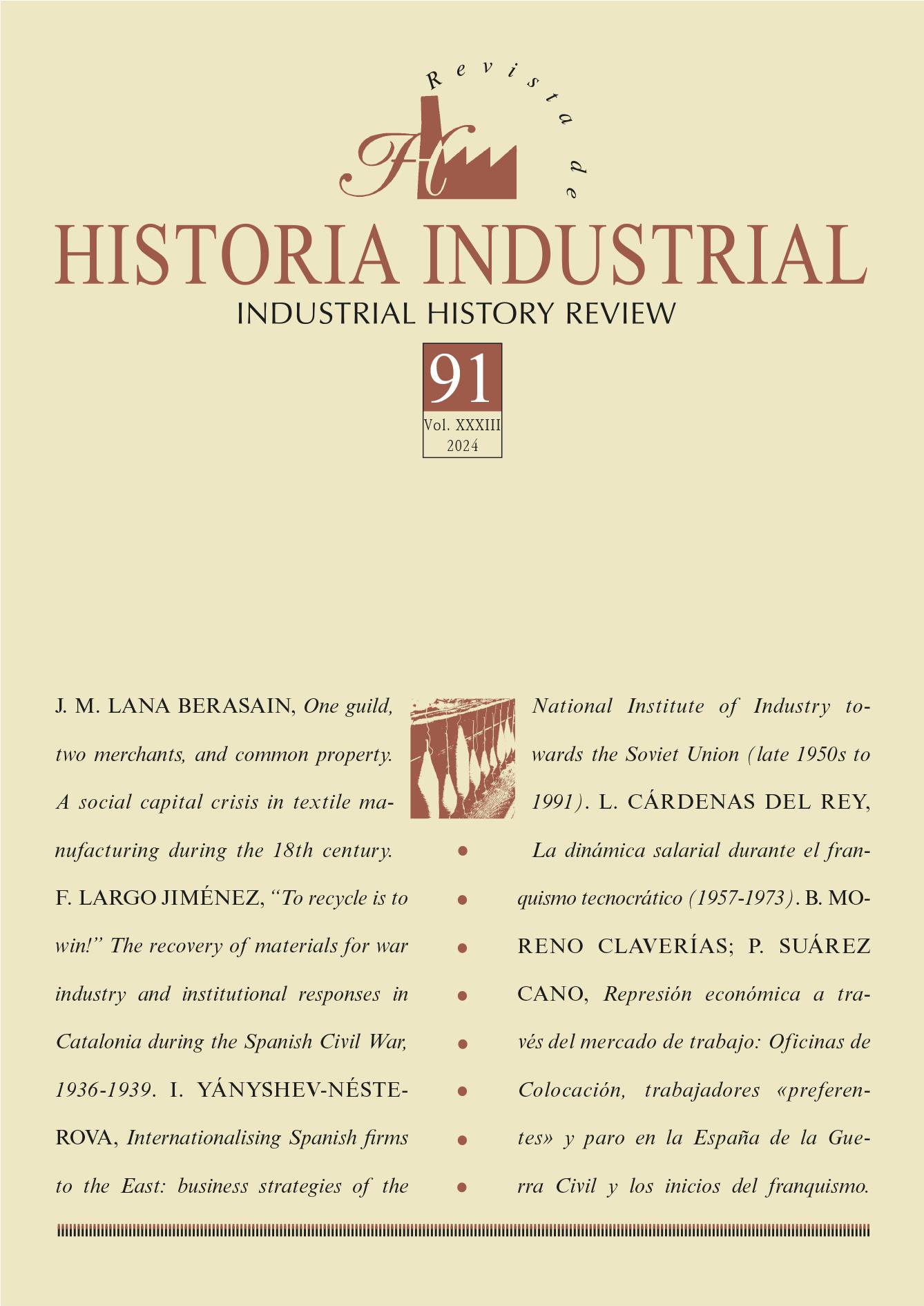 Founded in 1992, Revista de Historia Industrial – Industrial History Review (RHI-IHR) is a pioneering journal indexed in the most prestigious international databases. It promotes historical research into the processes of industrialization and the social, economic, institutional, environmental, and demographic transformations associated with them. With a global scope and an inclination toward methodological diversity, RHI-IHR publishes original papers in English and Spanish in three regular issues each year. The current issue explores guilds, collective action, and social capital through a case study in the 18th-century Northern Iberian region of Navarre; recycling and reusing during wartime, focusing on the Spanish Civil War; and business strategies for internationalisation, wages, and the labour market under dictatorships, specifically during the Franco regime in Spain.