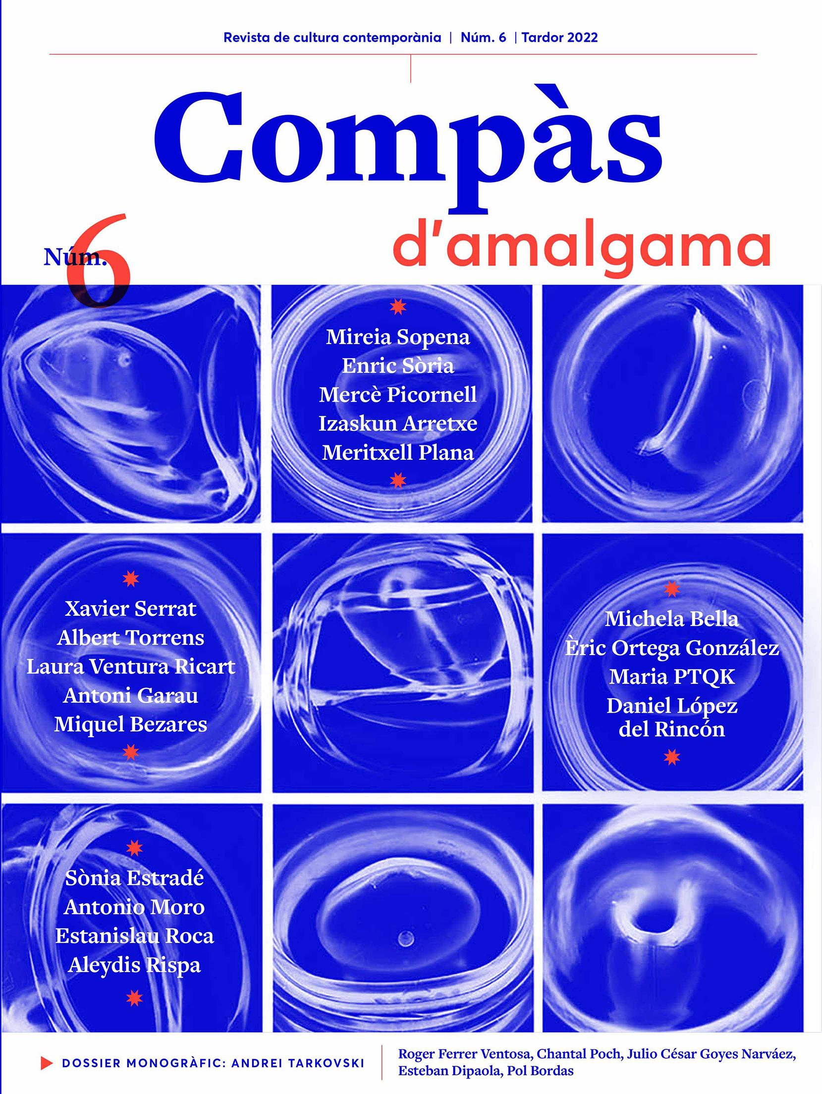Compàs d’amalgama és una revista d’Edicions de la Universitat de Barcelona que té com a objectiu esdevenir un mitjà de difusió transversal on es combinin gèneres i ritmes de la cultura contemporània. Aquest sisè número inclou textos sobre diferents gèneres literaris, amb una taula rodona sobre l’assaig en català i articles dedicats a les superheroïnes dels còmics de Marvel, les adaptacions de novel·les per a l’escena i les poetes i artistes de la generació beat. Per altra banda, s’hi ret homenatge a figures tan diverses com el fotògraf Toni Catany, el director i pedagog de cant coral Manuel Cabero i l’il·lusionista Gabi Pareras. Amb un plantejament més transversal, destaca l’entrevista a Maria PTQK i un text sobre l’irenisme del filòsof Richard Rorty, i tanca el número una crònica sobre la ciutat ucraïnesa de Donetsk. El dossier monogràfic, amb articles de caràcter acadèmic, està dedicat en aquesta ocasió al cineasta Andrei Tarkovski.