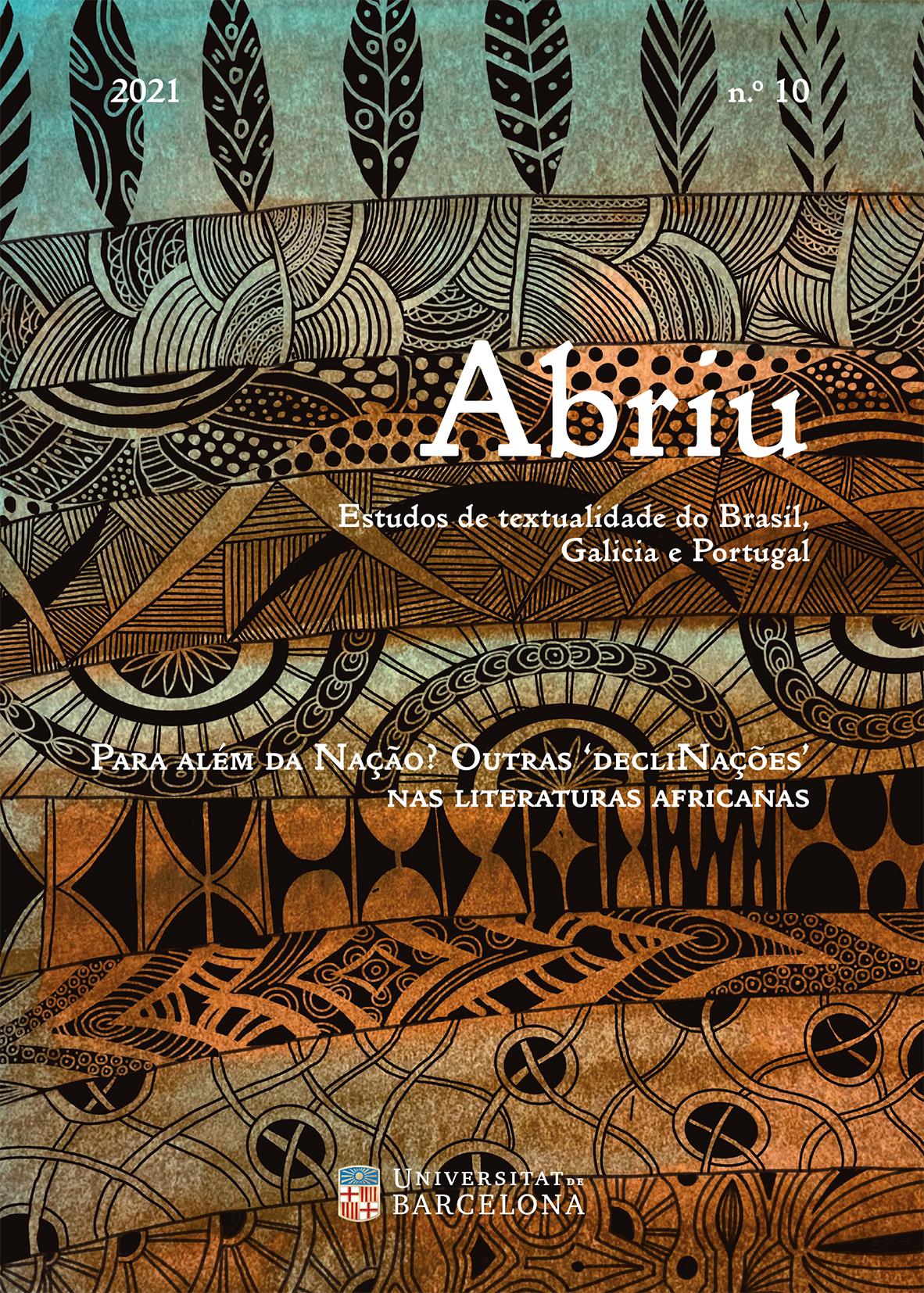 Volume 10 of Abriu, the journal of Galician and Portuguese Studies at the Universitat de Barcelona and the Cátedra José Saramago / CLP Instituto Camões, Universitat Autònoma de Barcelona, opens with a monograph dedicated to “Beyond Nation: Other ‘Declensions’ in African Literatures”, which includes six approaches to the evolution of the national perspective in the studies of Lusophone African Literatures from the 1980s to the present. The “Miscellany” section includes works on Rosalía de Castro, Annette Meakin, Lúzia Romão and Lupe Gómez, and the new tendencies in the portuguese Literary festivals. The section “Open Space” rescues the galician version of seven poems of “Lírica inglesa” published by Ramón Cabanillas and some documents of the censorship in 1975 about Sempre en Galiza by Castelao. The “Reviews” section includes notes on recent books of Chus Pato, José Rui Teixeira, on Iberian Studies and Catalonia, and on a translation of Clarice Lispector into Catalan.