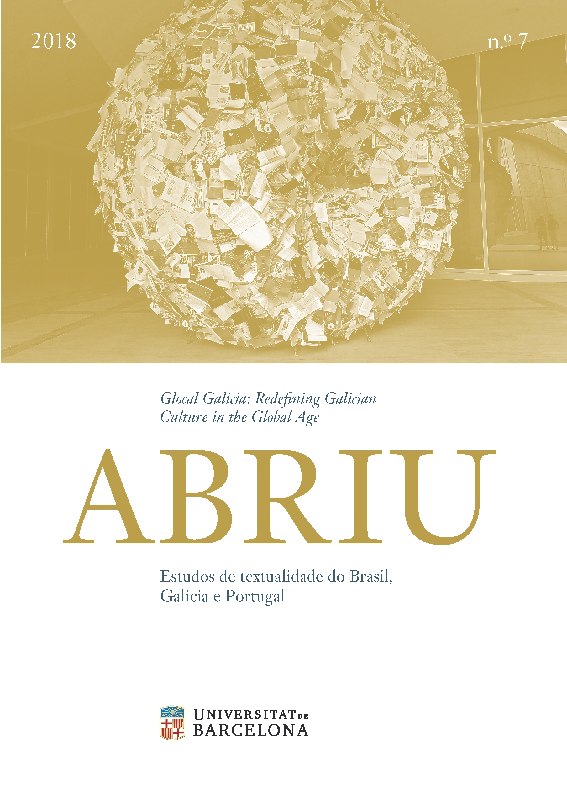 Volume 7 of Abriu, the journal of the Department of Galician and Portuguese Studies at the University of Barcelona, opens with a monograph on “Glocal Galicia: Redefining Galician Culture in the Global Age”, and includes contributions from specialists from universities in New Zealand and the United States. The papers analyze recent documentary production on diverse topics, such as Lois Patiño, digital heritage, the Disneyfication of Santiago de Compostela, and the fictionalization of a queer, transnational Galician identity in Mario Regueira. The “Miscellany” section includes pieces on the Second Spanish Republic and the Spanish Civil War in Hispanophobic Portuguese nationalism, and the poetry of Carlos Drummond de Andrade. It is concluded by works on the unpublished correspondence between Rafael Dieste and María Zambrano, contemporary art in a novel by Ricardo Lisias, and a discussion of Emma Ríos as an author of graphic novels. The “Reviews” section collates notes on Portuguese to Catalan translations, the biography of Rosalía de Castro by M. X. Lama, and a book by Colmeiro on Galician culture in globalization.