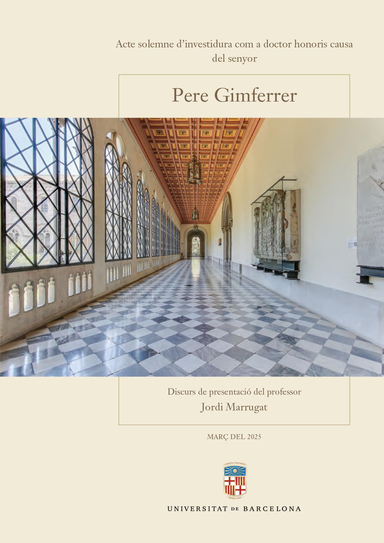 Discurs de l’acte solemne d’investidura acadèmica de conferiment del grau de doctor honoris causa al senyor Pere Gimferrer, poeta, assagista i traductor. El professor Jordi Marrugat ha destacat la seva contribució als estudis de literatura, art i cinema, com també la seva capacitat de renovar els llenguatges literaris des de la dècada dels seixanta fins a l’actualitat.