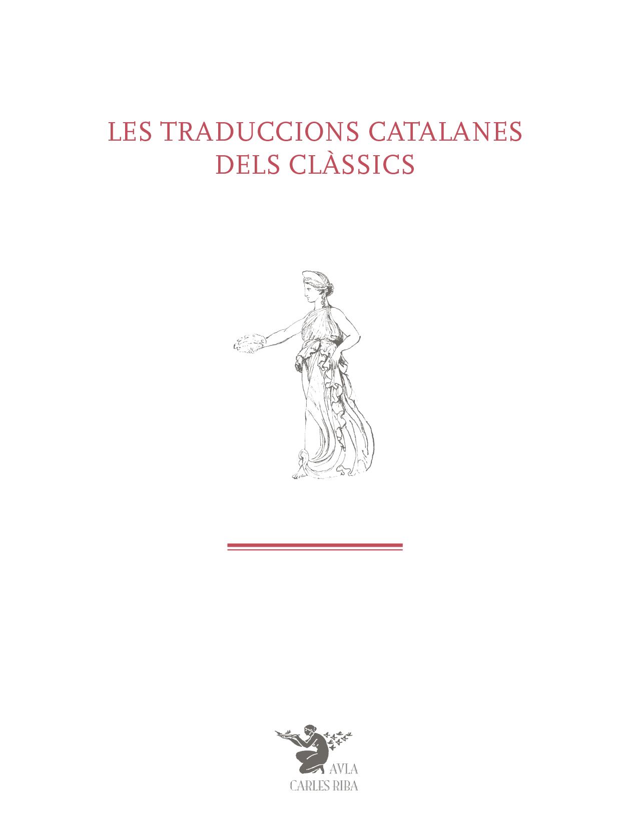 Les traduccions grecollatines han ocupat, al llarg dels segles, un lloc destacat en la recerca sobre la influència dels clàssics en la literatura catalana. En aquest volum s’aborda l’estudi d’algunes de les versions catalanes d’autors grecs i llatins des del segle XIV fins a l’actualitat. Hi predominen les publicades al segle XX arran del gran impuls que va significar la Fundació Bernat Metge per a la difusió dels clàssics entre el públic català, a més del seu paper cabdal en l’enriquiment i la consolidació de la nostra llengua. Les traduccions catalanes dels clàssics sorgeix com a conseqüència natural de la tasca investigadora de l’Aula Carles Riba, perquè, en l’estudi de la petja grecollatina en les lletres catalanes (palesa en la recreació de mites, l’ús de gèneres clàssics, etc.), de manera directa o indirecta la pràctica de la traducció s’hi fa sempre present.