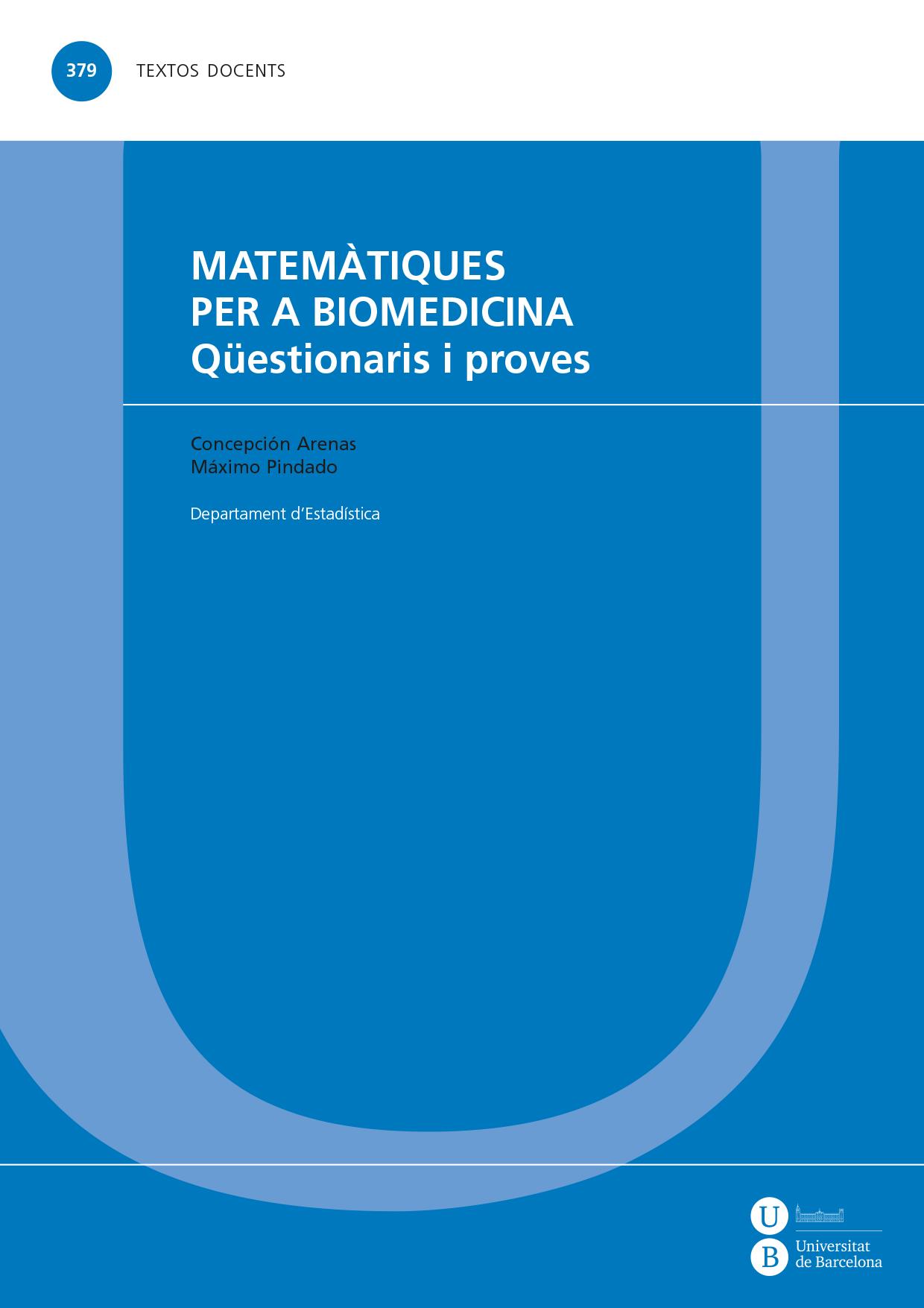 Matemàtiques per a biomedicina presenta un recull de proves i qüestionaris de l’assignatura Matemàtiques: Aplicacions a la Biomedicina del grau de Ciències Biomèdiques. L’avaluació d’aquesta matèria consisteix, en part, en qüestionaris d’opció múltiple i proves sobre situacions biomèdiques justament com les que es publiquen en aquest volum. Com que la correcta resolució dels exercicis requereix tant un coneixement de conceptes matemàtics com un bon ús de les competències adquirides, aquesta obra facilita als estudiants un mitjà d’autoavaluació que en certifica el grau d’aprenentatge. Essent així, aquest llibre, que millora la competència matemàtica des de la qual es resolen i modelitzen situacions biomèdiques, contribueix, amb claredat i precisió, a la formació dels futurs professionals de la biomedicina.