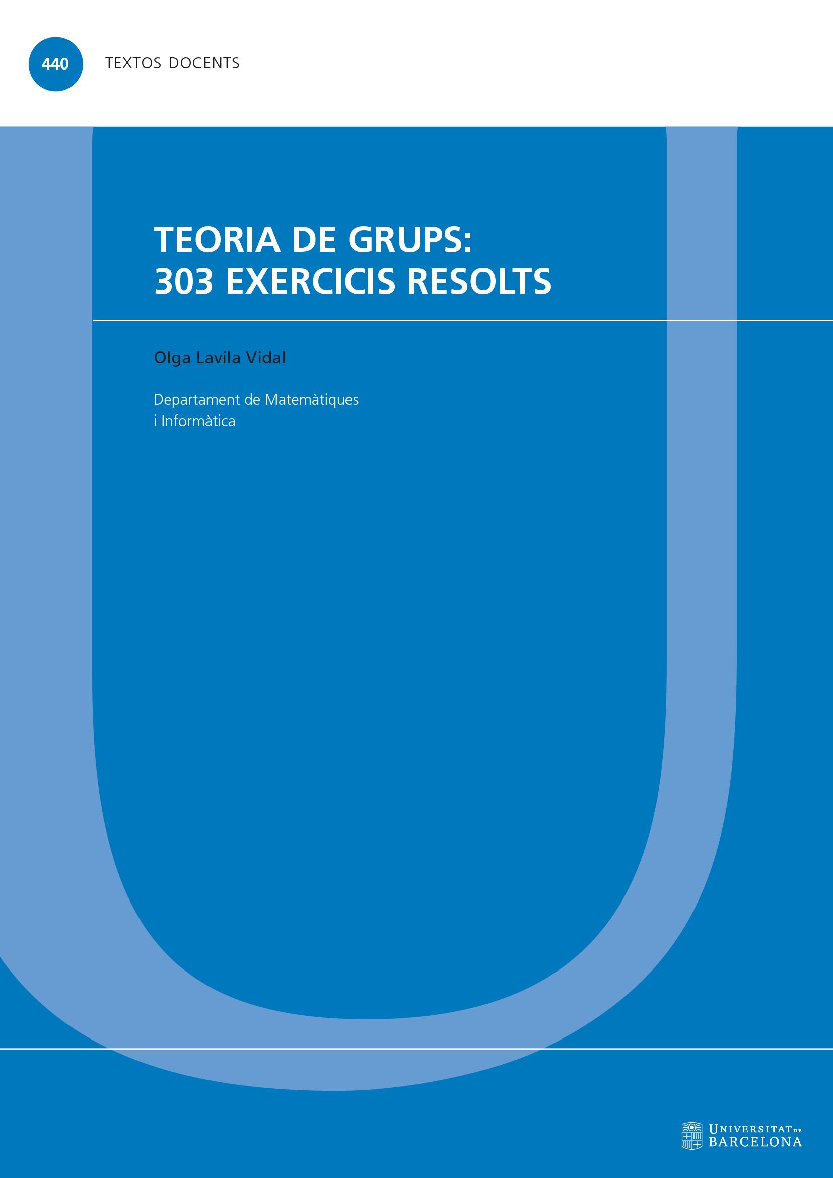 La teoria de grups és una eina efectiva per resoldre problemes matemàtics fonamentals, com ara la resolubilitat per radicals de les equacions algebraiques en una incògnita. Aquest llibre en proporciona els resultats principals, que es descobreixen i es proven a partir d’una col·lecció de 303 exercicis. En el primer capítol s’exposen les definicions bàsiques de la teoria de grups i, després de cada nou concepte, els enunciats dels exercicis que es proposen per aplicar-lo i assimilar-lo; en els deu capítols següents, els exercicis, agrupats per temes, es resolen pas a pas, i, al final, s’inclou una bibliografia específica. Adreçat principalment als estudiants de l’assignatura d’Estructures Algebraiques de segon curs del grau de Matemàtiques, el text docent que presentem facilita l’aprenentatge autònom i contribueix a la comprensió de la matèria.