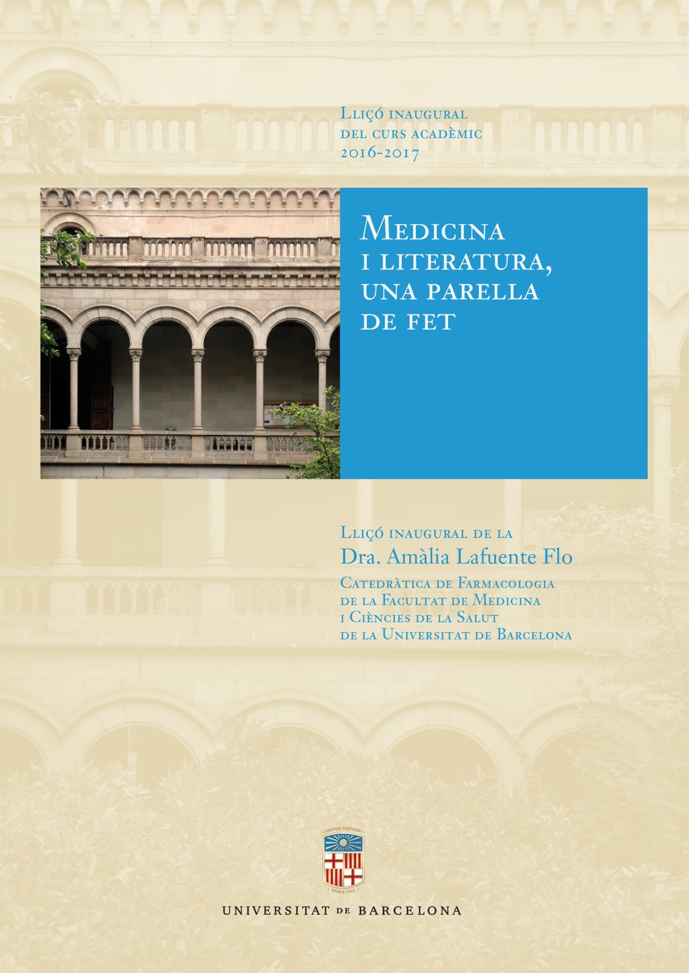 La lliçó inaugural del curs 2016-2017 és obra de la Dra. Amàlia Lafuente Flo, catedràtica de la Facultat de Medicina i Ciències de la Salut de la Universitat de Barcelona. A partir de la seva experiència i coneixements com a metge i escriptora, la Dra. Lafuente analitza les relacions entre la medicina i la literatura, i fa un recorregut apassionant per obres i autors que han sabut casar totes dues disciplines.