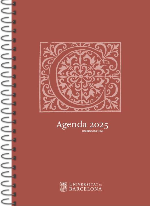L’agenda 2025 és una eina útil per a tothom, un dietari pràctic amb setmana a la vista que us ajudarà a organitzar-vos. A més, conté informació d’interès sobre la Universitat de Barcelona: el calendari acadèmic, el plànol dels campus, la llista dels departaments, l’oferta d’ensenyaments, les adreces universitàries i La UB en xifres. Coincidint amb la redacció del nou Estatut de la Universitat de Barcelona, l’Agenda 2025 reprodueix les Ordinacions per reformacio y perpetua fundacio de la Universitat del Studi General de la ciutat de Barcelona, impreses a l’estampa de Jaume Cortey el 18 de juliol de 1560, i que es conserven al CRAI Biblioteca de Fons Antic de la Universitat de Barcelona.