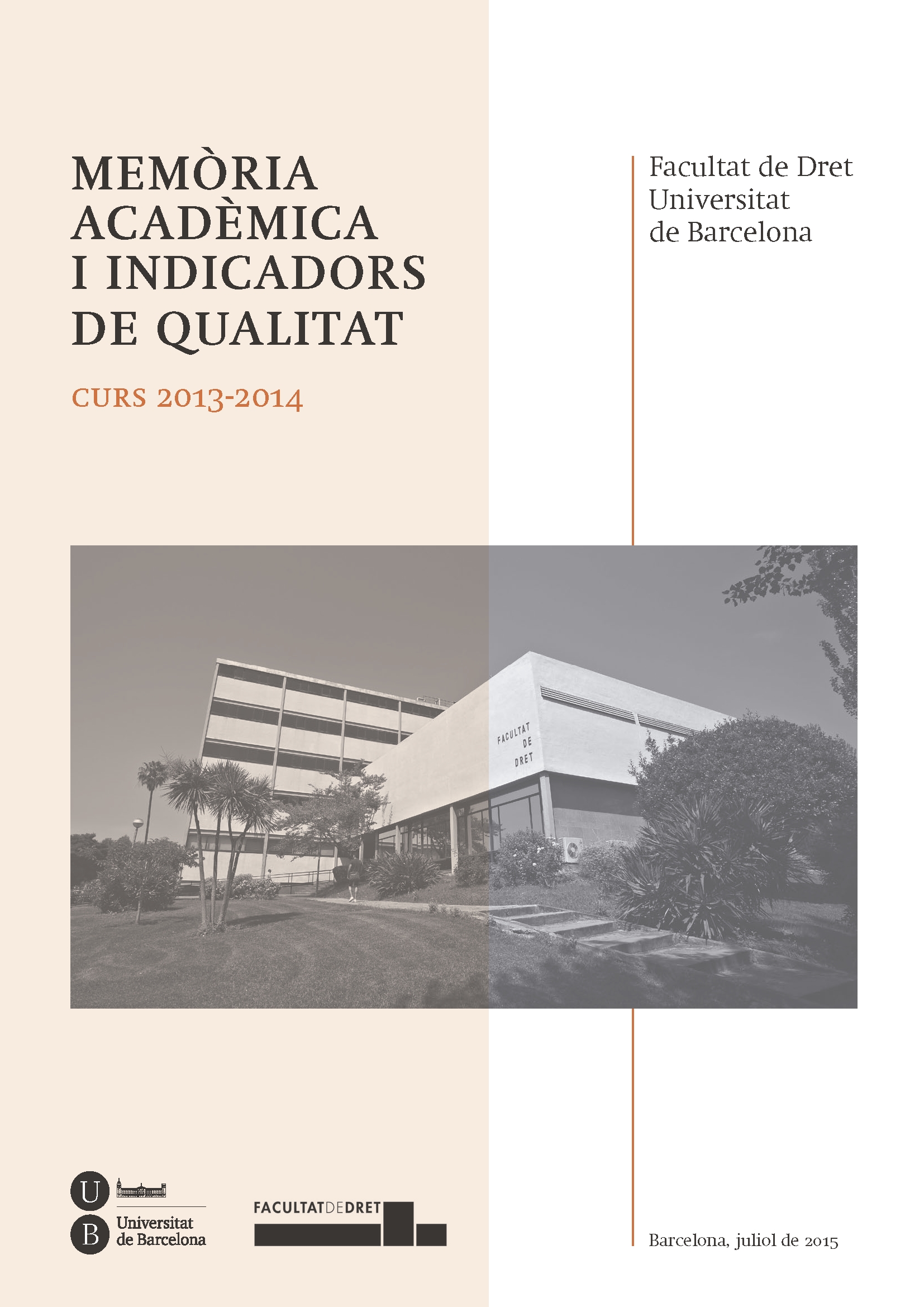 Memòria acadèmica i indicadors de qualitat. Curs 2013-2014. Facultat de Dret (eBook)