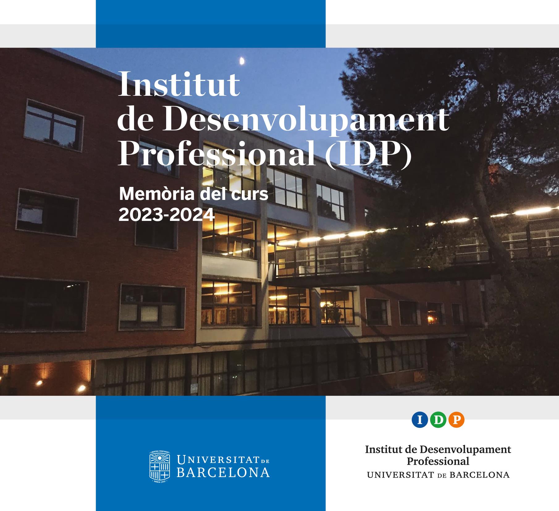 L’Institut de Desenvolupament Professional (IDP) és, des de fa més de cinquanta anys, una institució de referència de la Universitat de Barcelona en la formació permanent del professorat i dels professionals en general. La memòria d’activitats del curs 2023-2024 reflecteix la tasca duta a terme per l’equip humà que configura aquest organisme i destaca la seva dedicació indiscutible a l’excel·lència i la innovació en la formació, el seu compromís amb la millora contínua i els avenços significatius assolits a les principals àrees d’actuació: la formació permanent del professorat, la recerca en docència universitària, i el desenvolupament i la innovació en l’àmbit de la pedagogia.
