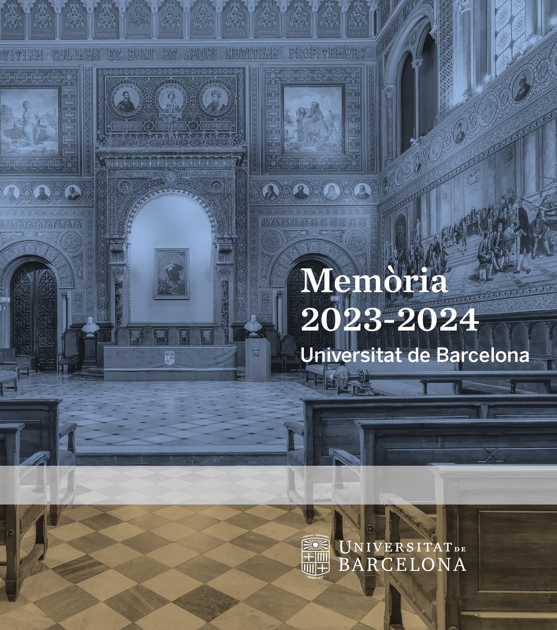 La Memòria de la Universitat de Barcelona presenta les principals activitats del curs acadèmic 2023-2024 i el conjunt d’iniciatives, dades i resultats més remarcables que ha assolit la institució. S’hi destaca el més rellevant dels àmbits de la docència, la recerca, la transferència, les activitats que centren la vida universitària dels estudiants, així com la projecció de la UB en la societat i en el món.