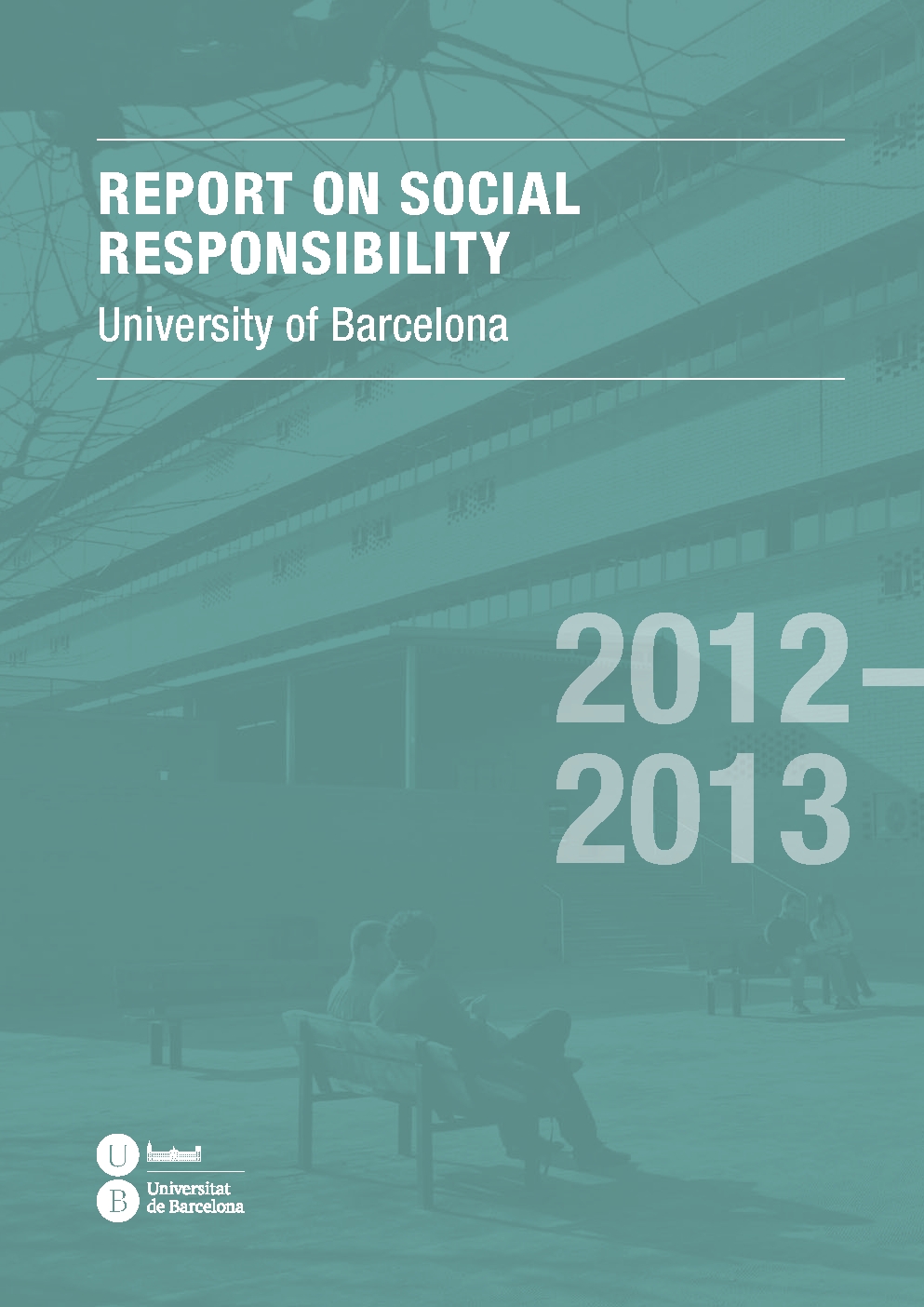 The Report on Social Responsibility gives an account of the University of Barcelona’s main activities in relation to our ethical commitments and social responsibilities during the academic year 2012-2013. In its pages, readers will find comprehensive data on the UB, including the most important information on our management ethics, our responsibility to students and to staff, our impact on society and the economy, and our commitment to improve the natural environment, among other matters. It shows that the University of Barcelona is a leading institution not only as a consequence of the quality of our teaching and research, but also because of our firm belief in making a positive impact on the environment through the activities that we carry out.