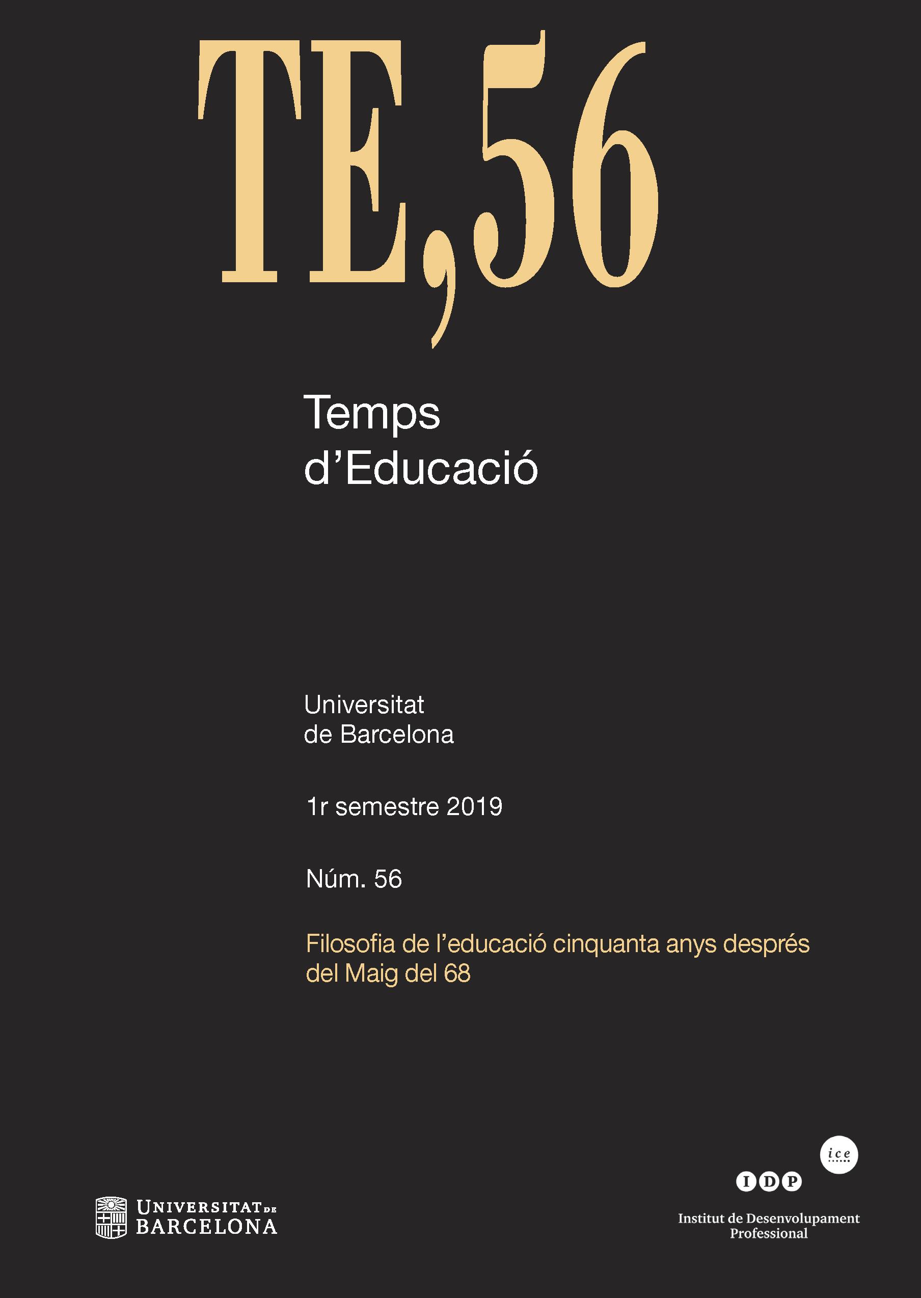 El núm. 56 de Temps d’Educació aborda la perspectiva de la filosofia de l’educació cinquanta anys després del maig del 68, que va significar un punt d’inflexió en el món de la cultura i de l’educació. Amb aquest horitzó, es tracten temes com l’educació liberal en comparació amb la lacedemònica, la significació del Protàgoras de Plató, el pensament pedagògic d’autors com Hobbes, Hegel, Alain, Hadot, Machado, Hannah Arendt, etc., sense oblidar la incidència del maig del 68. El número es completa amb les seccions d’«Estudis i recerques» (amb tres articles: discalcúlia, literatura popular, Skanderberg), de «Testimonis pedagògics» (sobre M. dels Àngels Ferrer i Sensat), de «Reflexions i assaigs» (que recull treballs sobre el pla d’escolarització extensiu de Banyoles i els processos d’escolta) i de «Notes de lectura» (a manera de reflexions bibliogràfiques).
