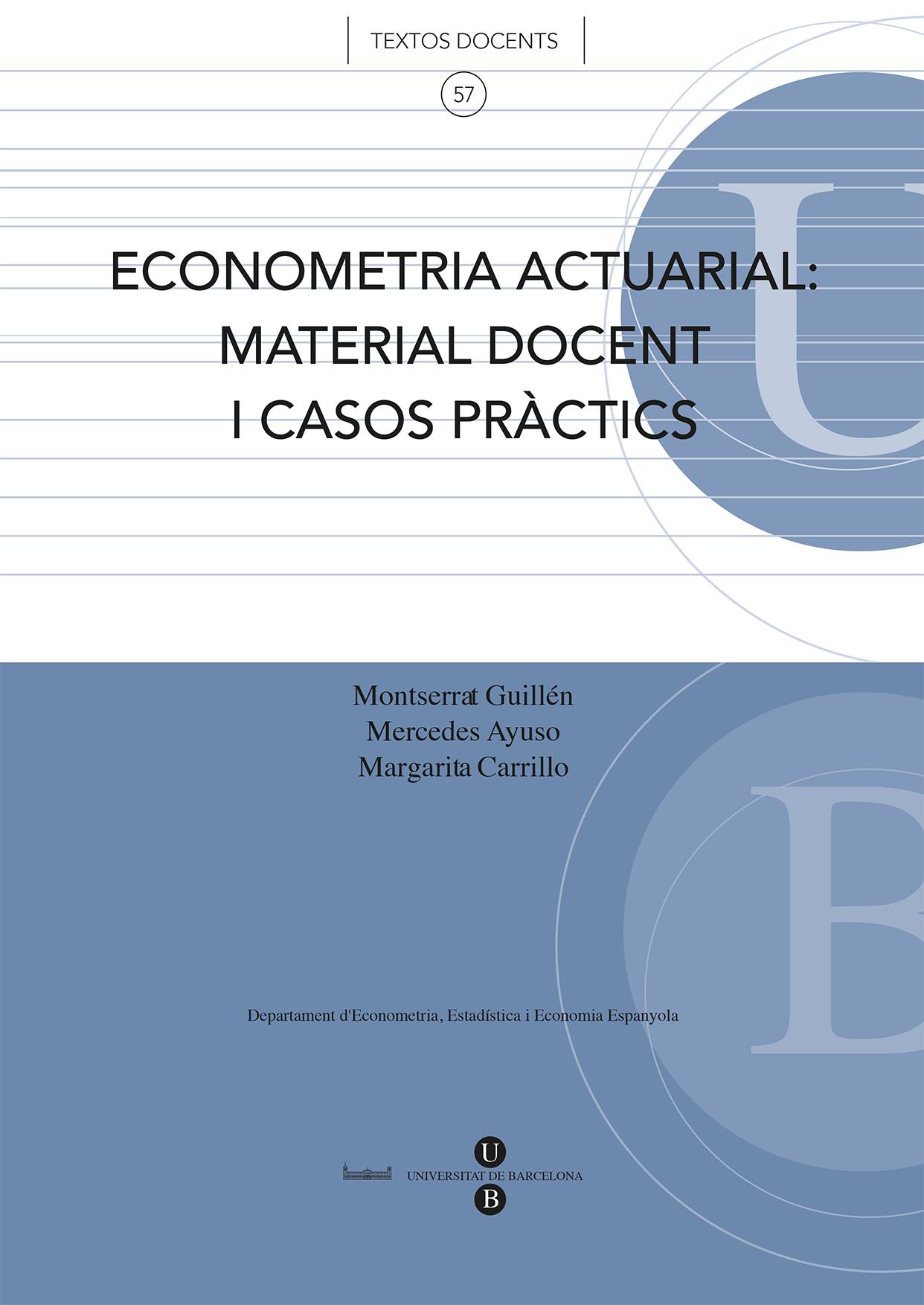 El desenvolupament de l'assignatura Econometria Actuarial de la llicenciatura en Ciències Actuarials i Financeres, ha conduït a fer una recopilació de material docent i casos aplicats que suplissin la manca de manuals d'econometria dedicats a especialistes en finances i assegurances. En aquest sentit, Econometria Actuarial: Material docent i casos pràctics té quatre vessants: a) inclou material que facilita l'estudi de la matèria; b) presenta casos reals extrets de la bibliografia especialitzada per a la seva discussió a classe; c) proporciona petites bases de dades per realitzar pràctiques amb ordinador; i d) proposa exercicis i problemes en relació amb els conceptes fonamentals de la matèria.