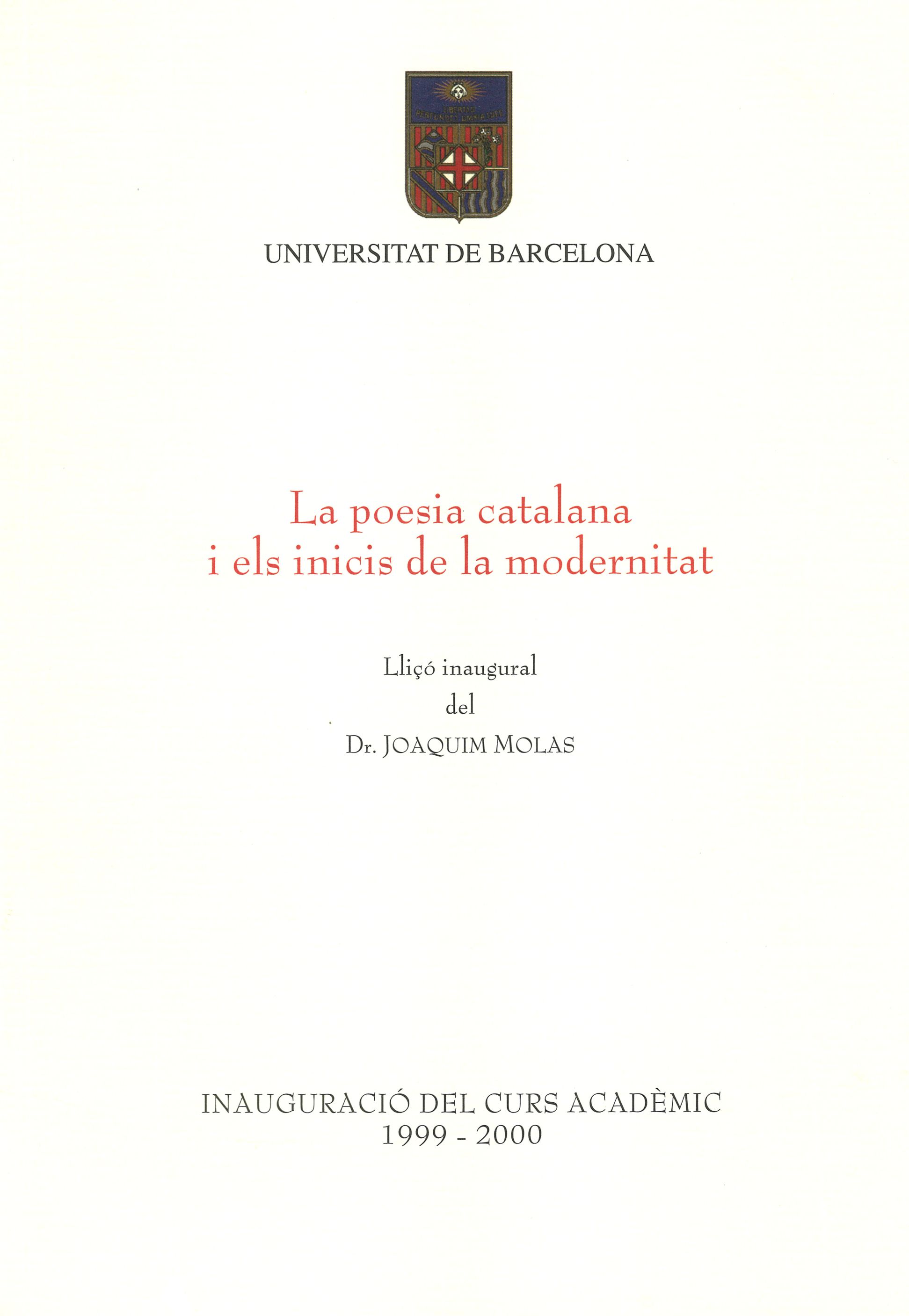 Poesia catalana i els inicis de la modernitat, La. Lliçó inaugural curs 1999-2000