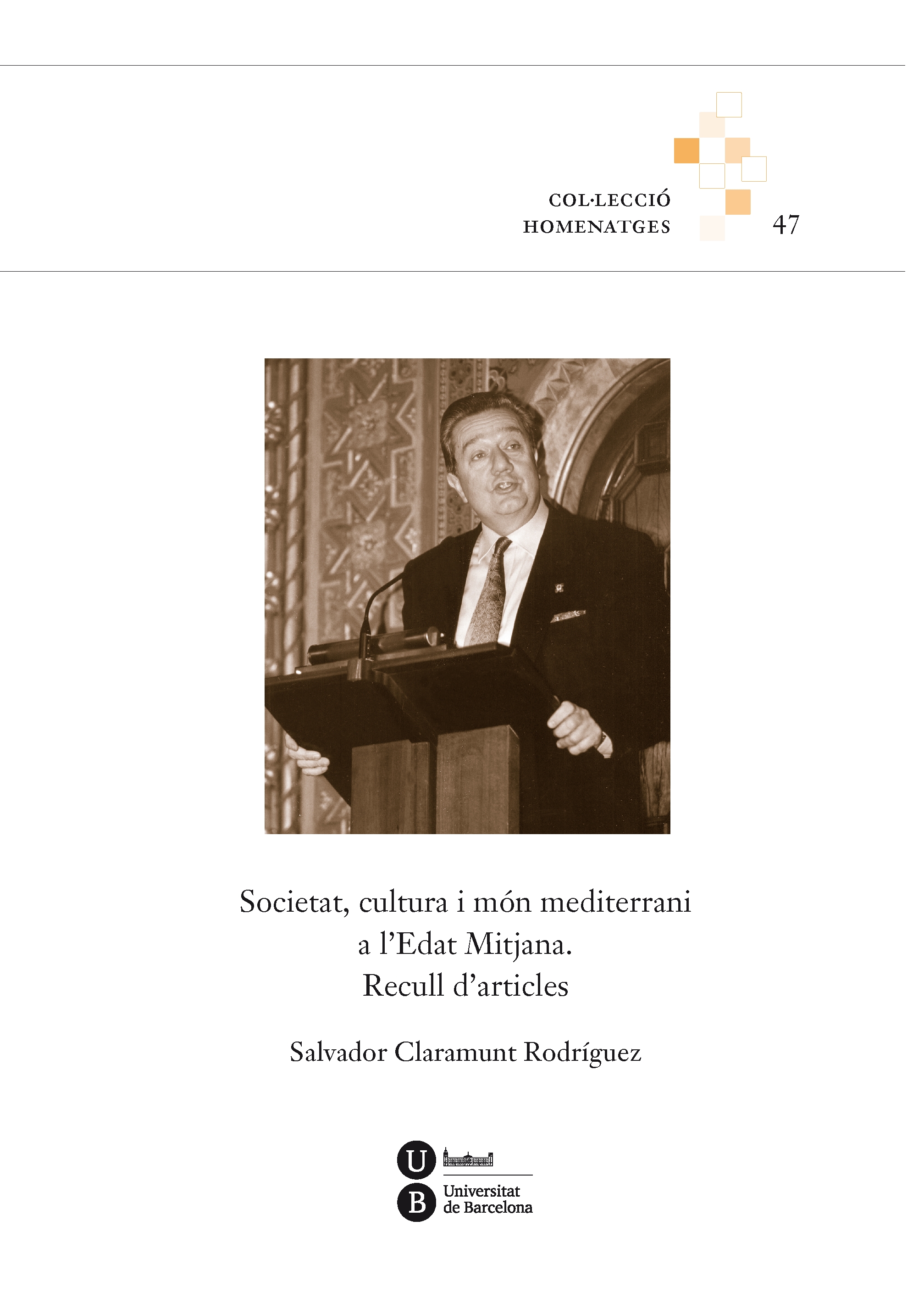 Aquest volum aplega una trentena d’articles de Salvador Claramunt Rodríguez, catedràtic d’Història Medieval de la Universitat de Barcelona, organitzats en tres grans àrees temàtiques que són la punta de llança dels àmbits als quals el polifacètic doctor Claramunt ha dedicat la seva tasca docent i investigadora. Així, a «Supervivència, vida i mort a l’Edat Mitjana», Claramunt analitza el calendari festiu a l’Edat Mitjana, els viatges, la mort o l’assistència als pobres; els articles de «Cultura i món universitari» configuren, aplegats aquí, una visió completa i detallada del món i la vida universitària medievals; finalment, a «Catalunya, la Corona d’Aragó i el Mediterrani» es recullen articles que dibuixen, amb el mestratge propi de l’autor, la formació de Catalunya i la Corona d’Aragó i la seva expansió pel Mediterrani.