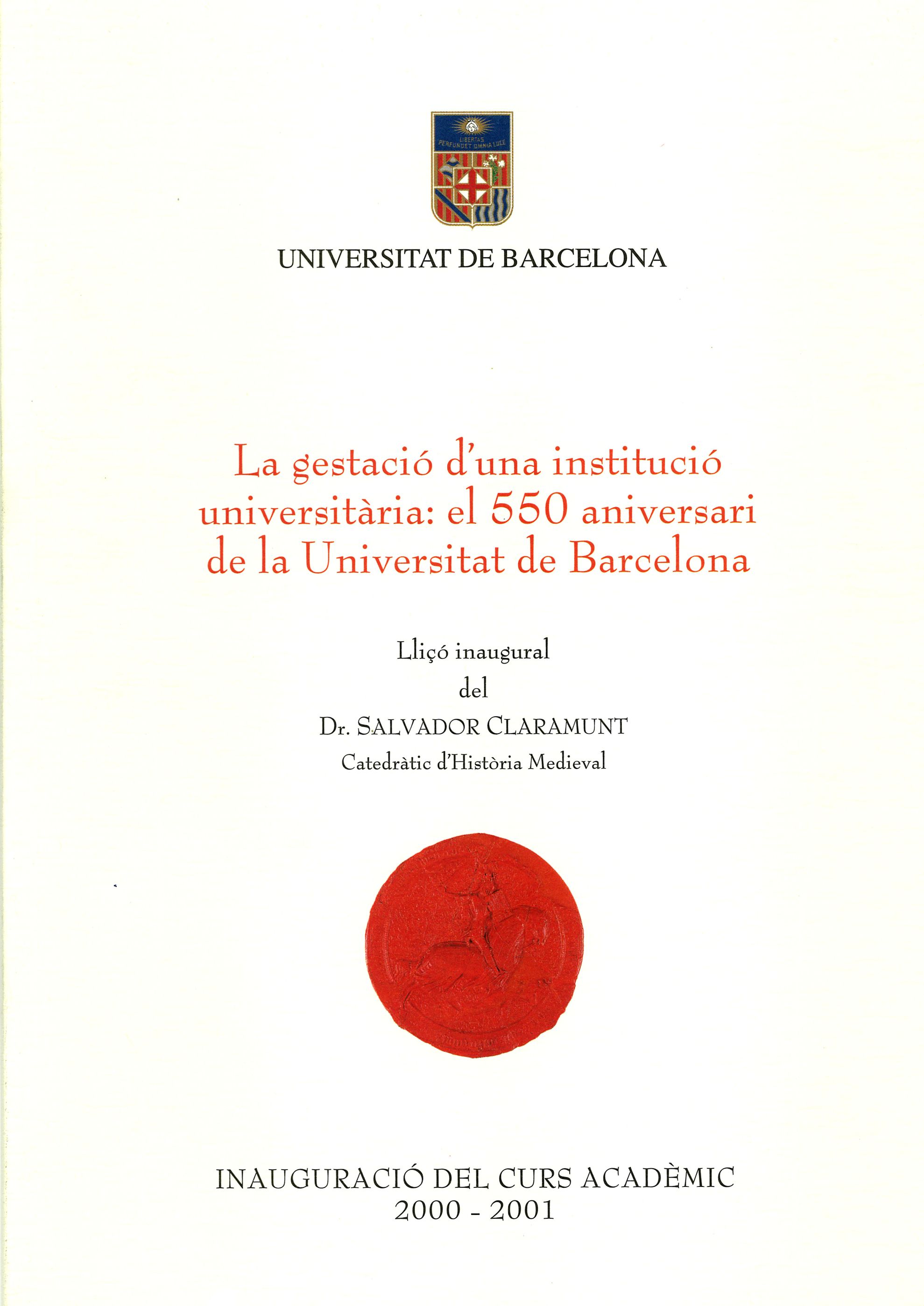 Gestació d’una institució universitària: el 550 aniversari de la Universitat de Barcelona, La. Lliçó inaugural curs 2000-2001