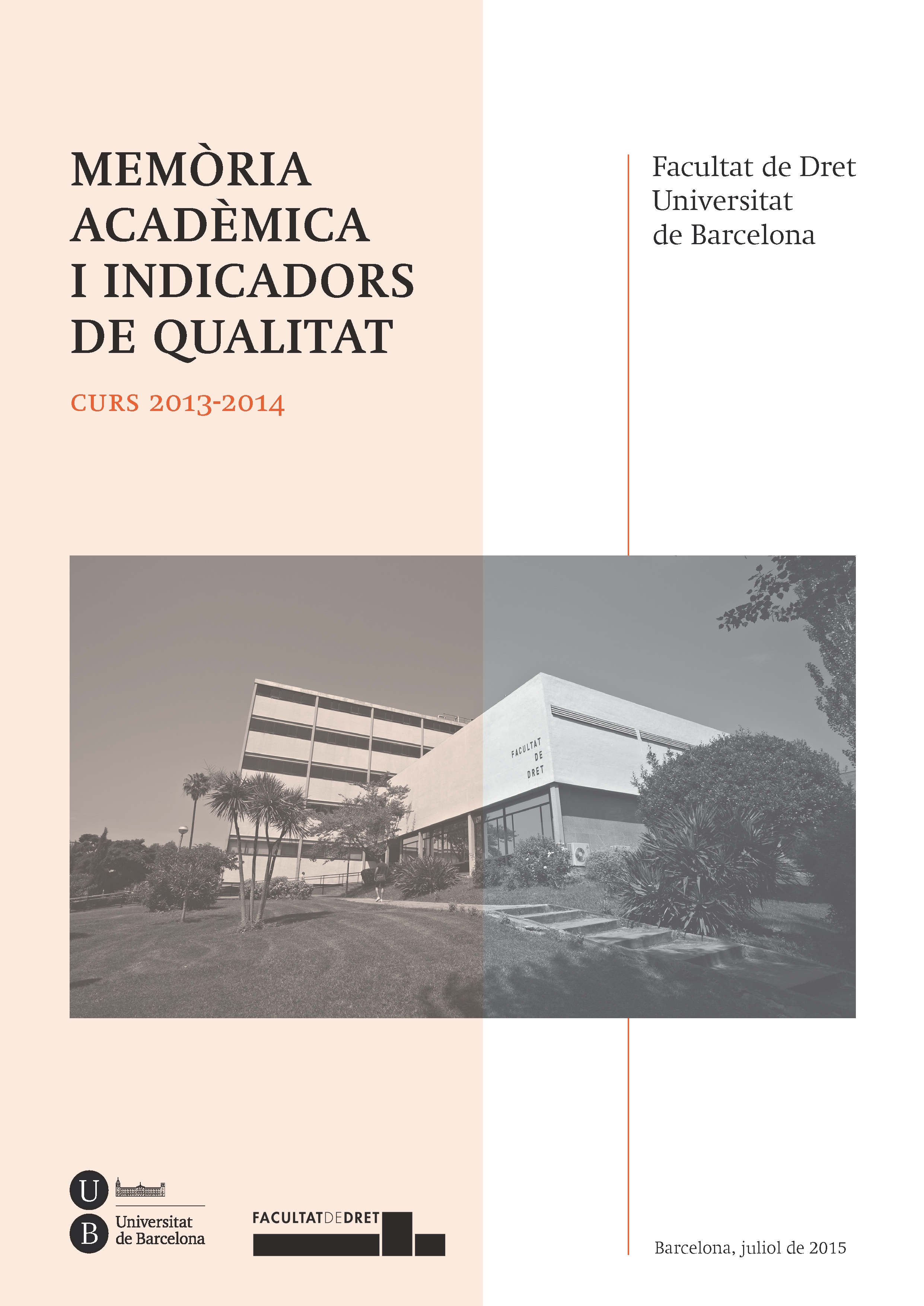 Memòria acadèmica i indicadors de qualitat. Curs 2013-2014. Facultat de Dret