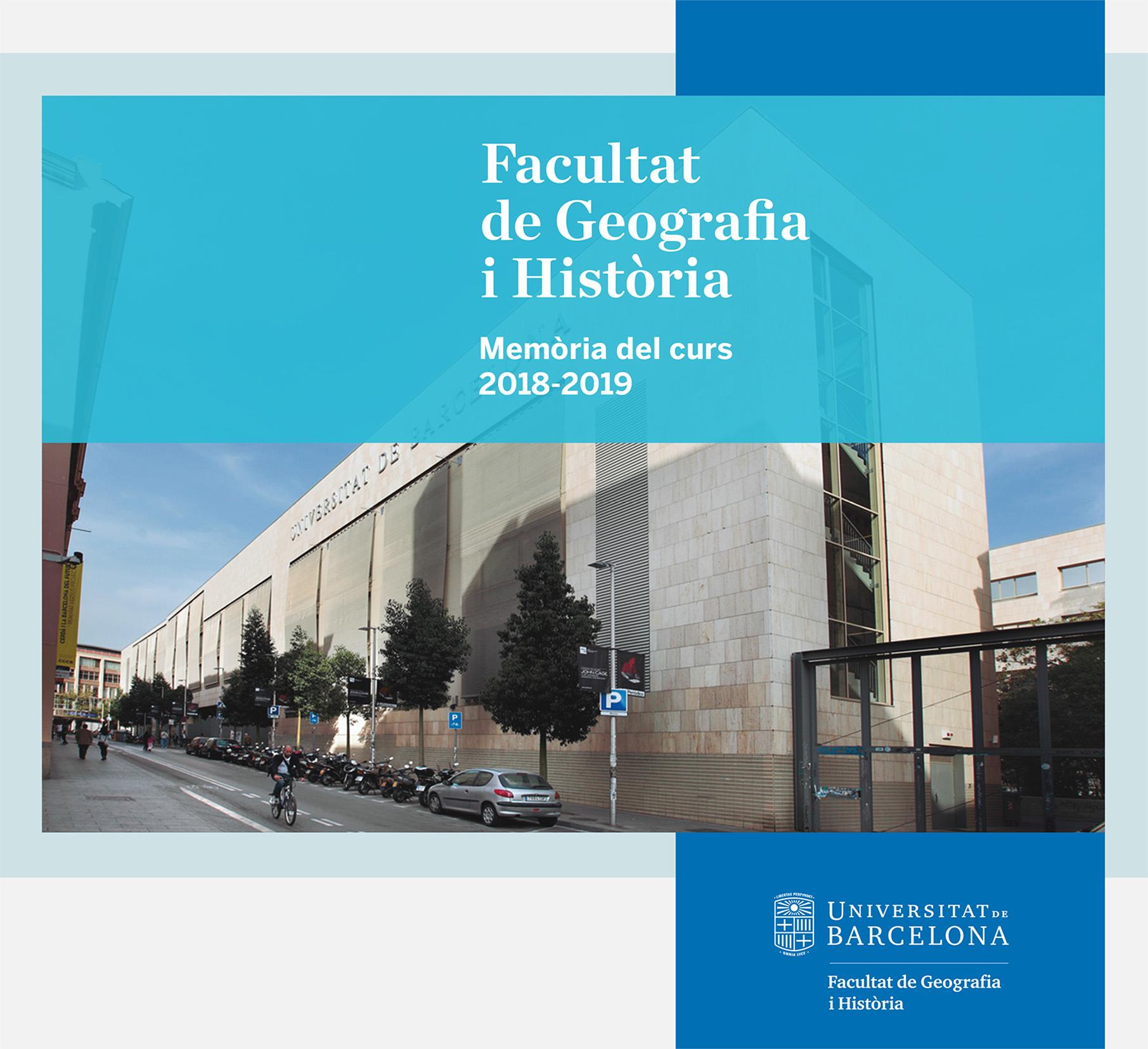 Per primera vegada en la història recent, la Facultat de Geografia i Història posa a disposició de la comunitat universitària, i, en general, de la societat, la seva memòria d’activitats, que en aquest cas fa referència al curs 2018-2019. Amb l’objectiu de potenciar la projecció de la Facultat en tots els seus àmbits i oferir la màxima transparència en la rendició de comptes, la present memòria fa un recorregut per les múltiples activitats i pel potencial de la institució, ja sigui en la vessant de la docència, ja sigui en la de la recerca o la transferència de coneixement.