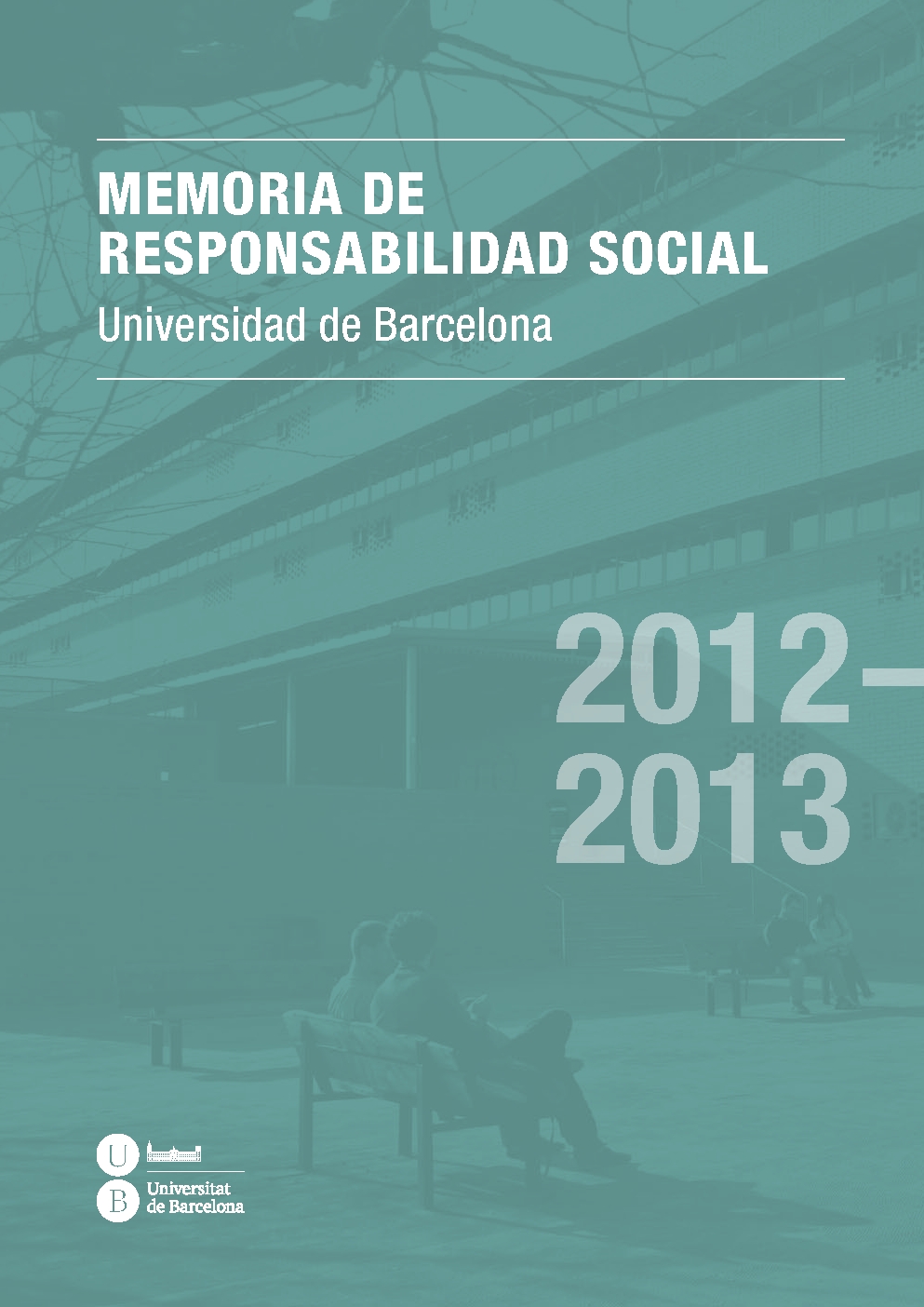 La Memoria de responsabilidad social es un documento que contiene las principales acciones llevadas a cabo a lo largo del curso académico, en este caso 2012-2013, relativas al compromiso ético y la responsabilidad social. Reúne información exhaustiva y los datos más relevantes de los ámbitos de la ética en la gestión, la responsabilidad ante el alumnado y los trabajadores, el impacto en la sociedad y en la economía, y el compromiso con la mejora del medioambiente. Y muestra que la Universidad de Barcelona es una institución de referencia no solo por la calidad de su docencia y su investigación, sino también por su firme voluntad de incidir positivamente en el entorno mediante las actividades que lleva a cabo.