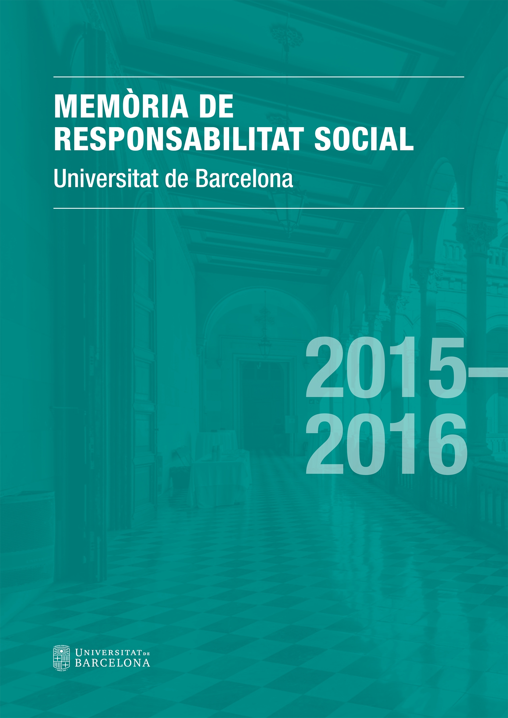 La Memòria de responsabilitat social és un document que recull les principals accions dutes a terme al llarg del curs acadèmic, en aquest cas 2015-2016, pel que fa al compromís ètic i la responsabilitat social. Conté informació exhaustiva i les dades més rellevants dels àmbits de l’ètica en la gestió, la responsabilitat envers l’alumnat i els treballadors, l’impacte en la societat i en l’economia, i el compromís amb la millora del medi ambient, entre d’altres. I mostra que la Universitat de Barcelona és una institució de referència no només per la qualitat de la seva docència i la seva recerca, sinó també per la seva ferma voluntat d’incidir positivament en l’entorn mitjançant les activitats que duu a terme.