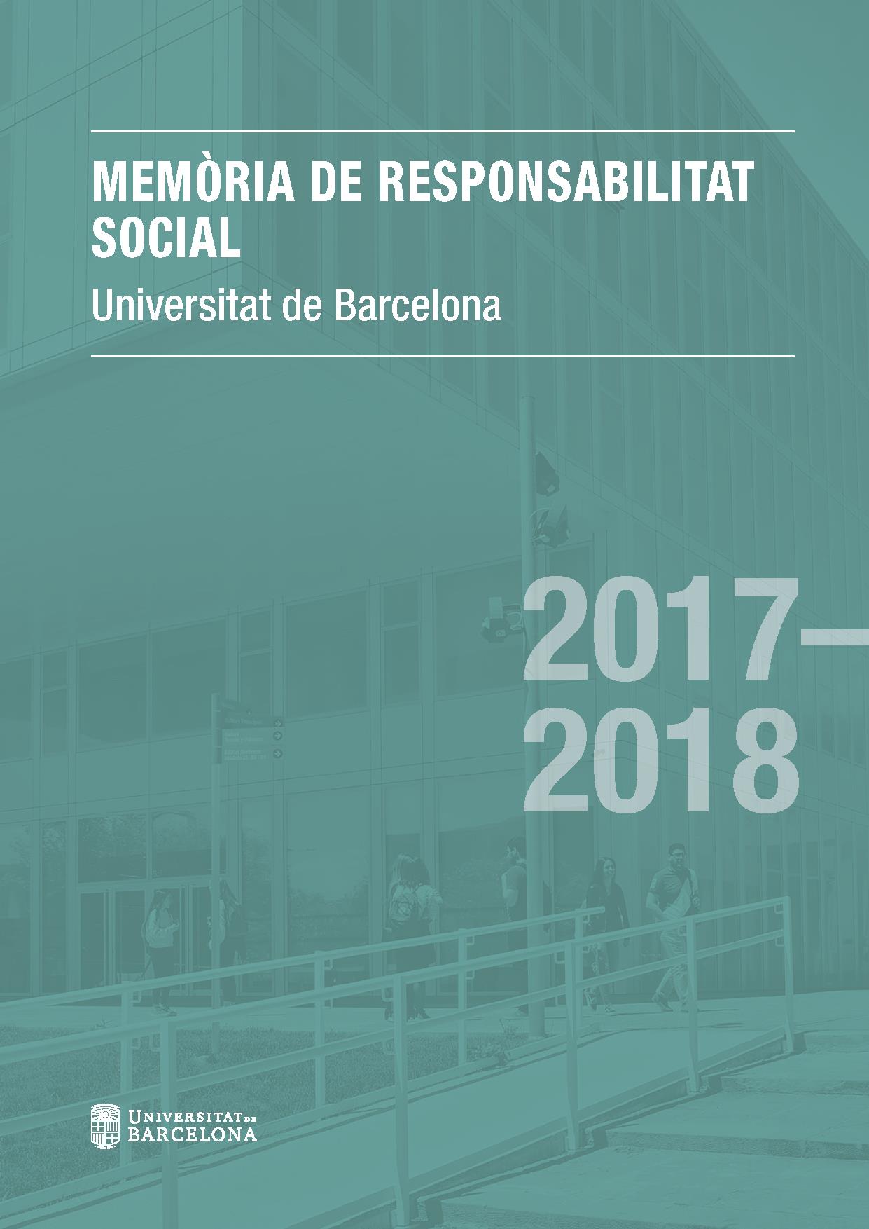 La Memòria de responsabilitat social és un document que recull les principals accions dutes a terme al llarg del curs acadèmic, en aquest cas 2017-2018, pel que fa al compromís ètic i la responsabilitat social. Conté informació exhaustiva i les dades més rellevants dels àmbits de l’ètica en la gestió, la responsabilitat envers l’alumnat i els treballadors, l’impacte en la societat i en l’economia, i el compromís amb la millora del medi ambient, entre d’altres. I mostra que la Universitat de Barcelona és una institució de referència no només per la qualitat de la seva docència i la seva recerca, sinó també per la seva ferma voluntat d’incidir positivament en l’entorn mitjançant les activitats que duu a terme.