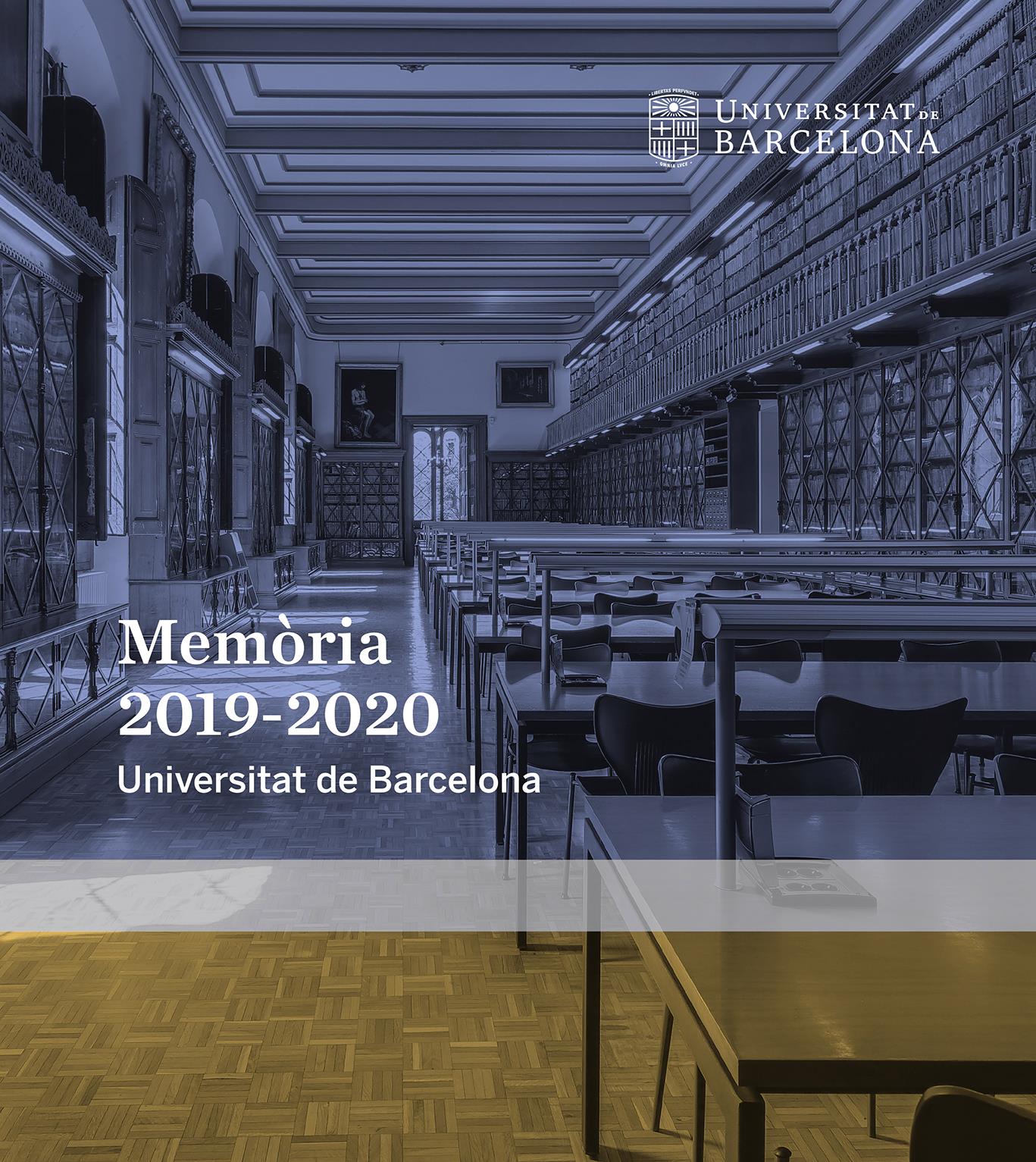 La Memòria de la Universitat de Barcelona presenta les principals activitats del curs acadèmic 2019-2020 i el conjunt d’iniciatives, dades i resultats més remarcables que ha assolit la institució. S’hi destaca el més rellevant dels àmbits de la docència, la recerca, la transferència, les activitats que centren la vida universitària dels estudiants, així com la projecció de la UB en la societat i en el món. En aquesta edició, s'hi ha incorporat un apartat específic amb el resum de les actuacions que tota la comunitat universitària ha dut a terme com a resposta a la crisi sanitària causada per la pandèmia de COVID-19.